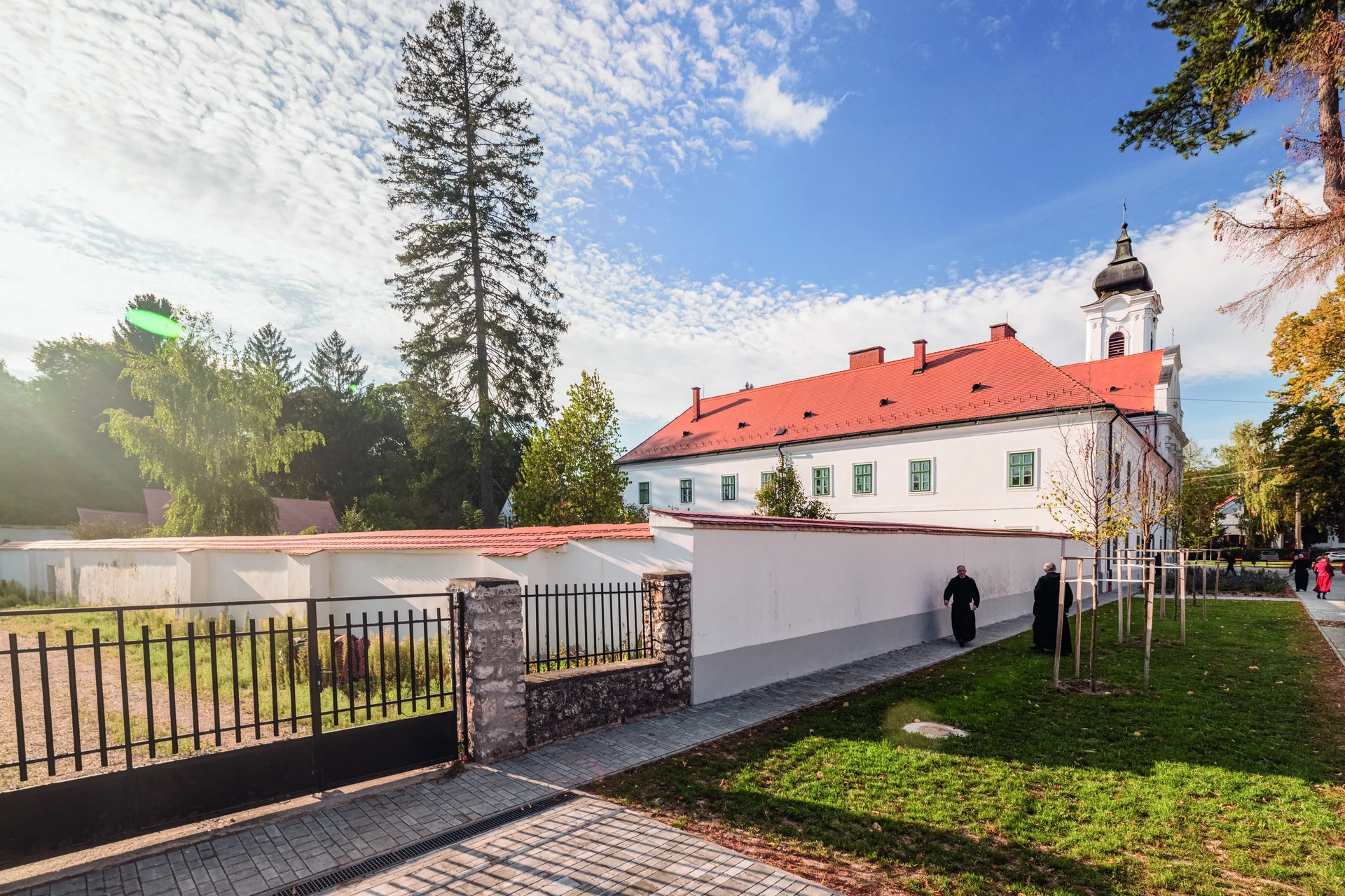 A Bakony festői völgyében megbúvó apátság első említése 1086-ból való. Az apátság története folyamatos pusztulás és újjászületés: a virágzó kolostort 1548-ban hagyták el a török elől menekülő barátok, akik csak 1693-ban tértek vissza. A szerzetesrendeket II. József 1786-ban feloszlatta, a bencések működését csak 1802-ben engedélyezték újra. Hosszú béke után 1950-ben újabb feloszlatás, majd 1998-ban ismét újraalapítás következett. A ma is álló kolostoregyüttest 1754-ben szentelték fel. Az egyszerű, de szép arányú homlokzatokat a magyar barokkra jellemző módon csak a bejáratok faragott keretei és az ablakok körüli tagozatok élénkítik. A templombelsőben a felújítás során fehérre meszelt falak gyönyörűen kiemelik az élénk színű, dúsan faragott oltárokat és a szószéket. A 20. század különböző évtizedeiből származó bútorzat helyére nemesen egyszerű berendezés készült. A helyreállított műemléki együttest új, illeszkedő épületek egészítik ki, látogatóközpont, szállásépület, múzeum, illetve közösségi ház várja a híveket és a zarándokokat.