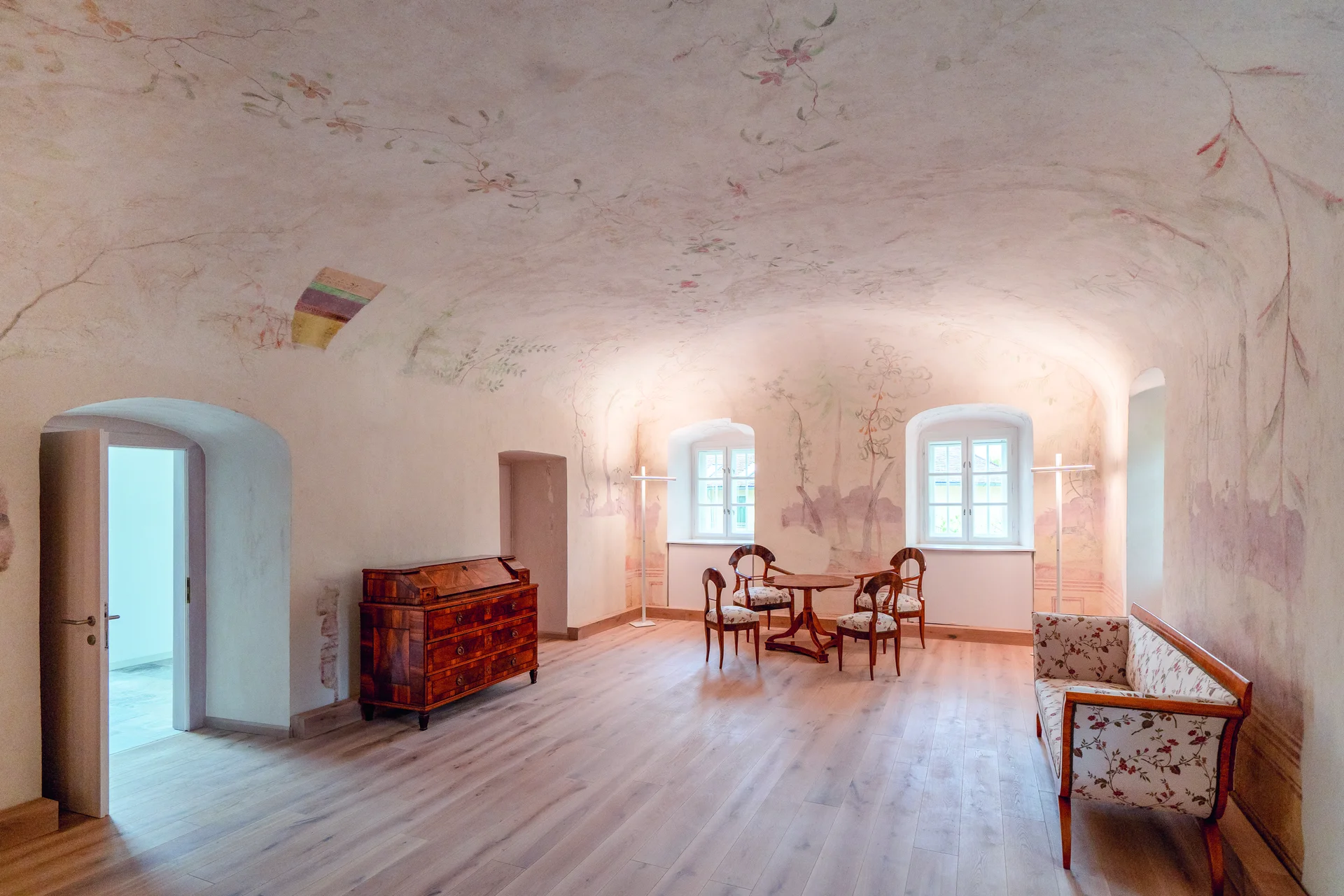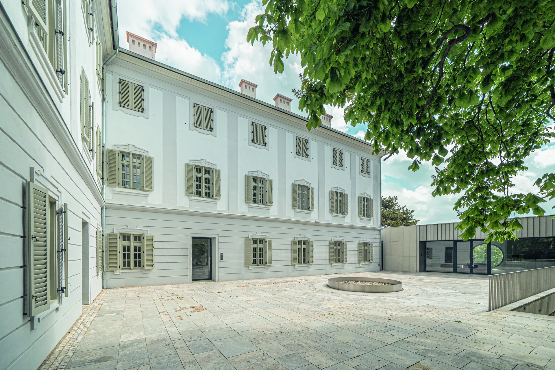 A kastély a reformkori fürdőváros egyik meghatározó épülete, amely a 18. század végén épült barokk stílusban, Esterházy Kázmér megrendelésére, Paulay Mihály tervei alapján. Az épületet a 19-20. század során többször átalakították, mai, neobarokk megjelenését 1940-ben nyerte el. A kastélyban sokáig fogadó működött, majd évtizedekig üresen állt. A felújítás célja a történeti épület konzervatív helyreállítása és egy új, vonzó funkció megtalálása volt. A rekonstrukció során a lehető legtöbb eredeti elemet megőrizték, míg a napjainkban szükséges tereket egy kortárs épületrészben helyezték el, amelyet üvegfalú folyosó köt össze a kastéllyal. A felújítást Herczeg László és munkatársai tervezték, a munkálatok során talált freskók helyreállítását Kis Virág Glória restaurátor irányította. Az épület ma nyaralástörténeti látogatóközpontként működik, bemutatva Balatonfüred fürdőkultúrájának történetét, ezzel összekötve a tóparti város múltját és jelenét.