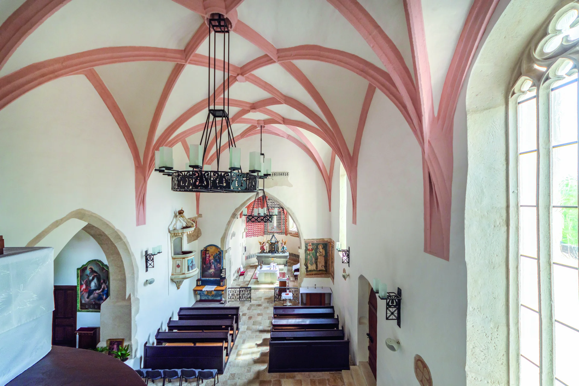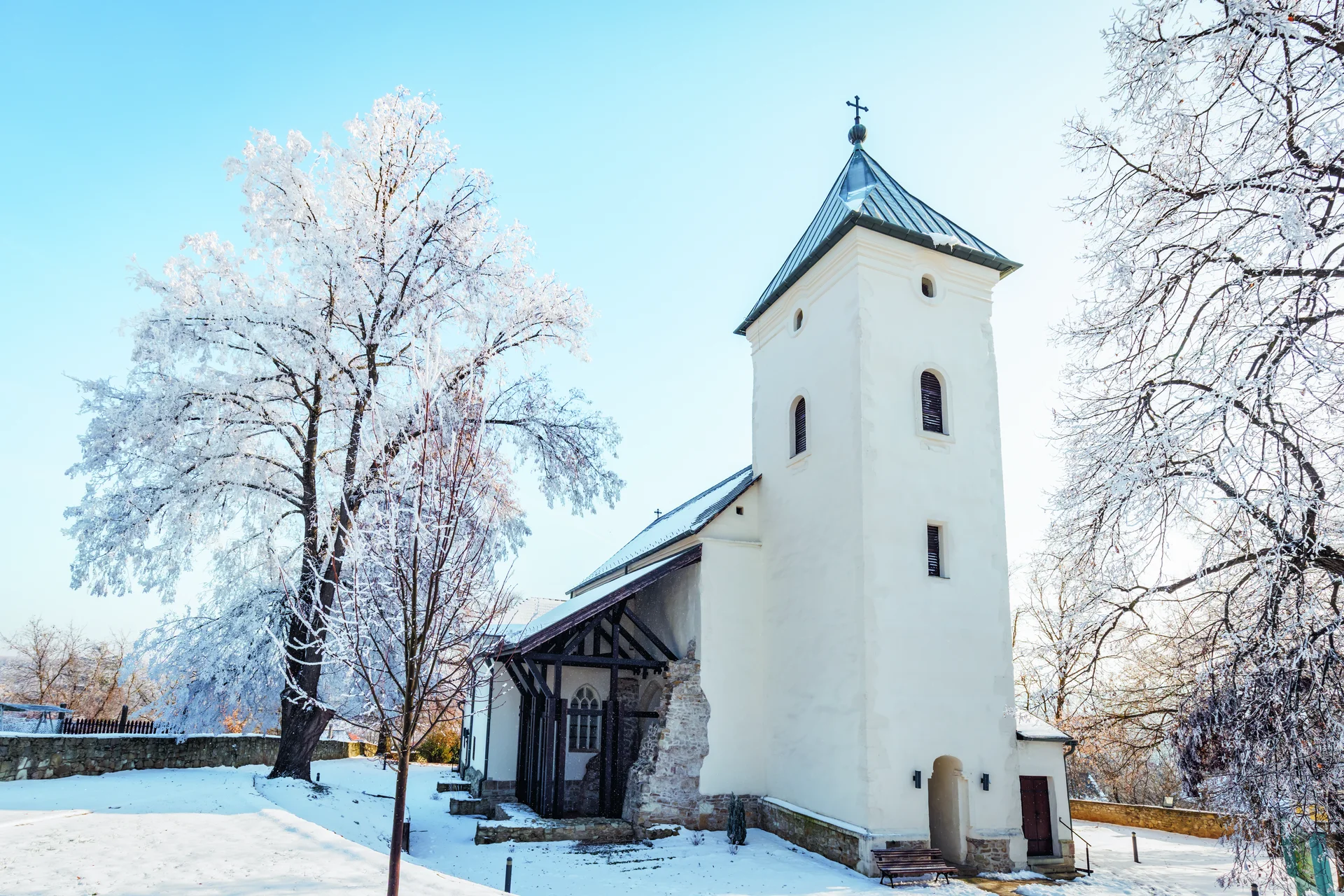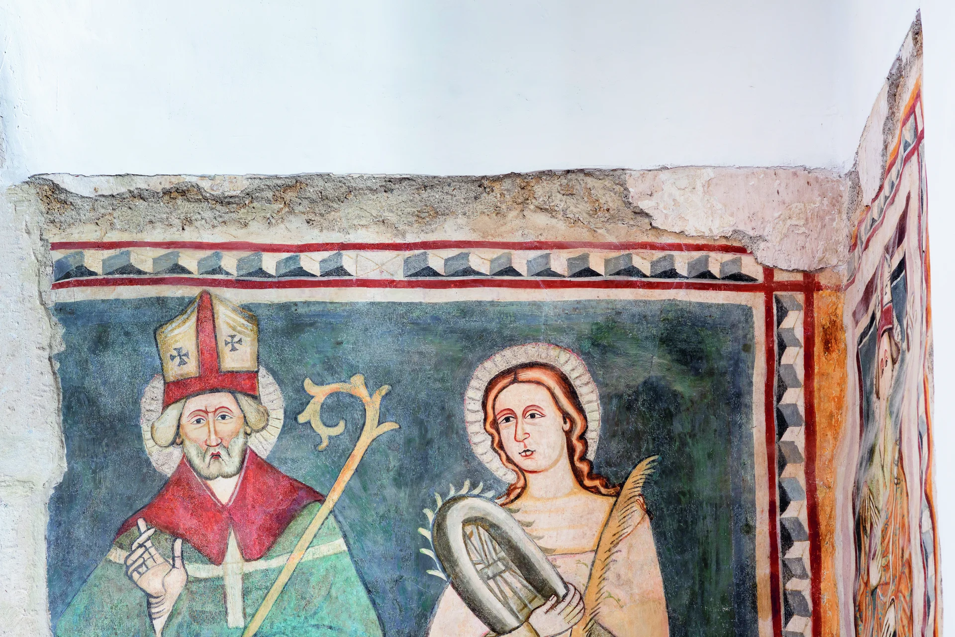 Élénk színek, vidám geometrikus minták – a bodrogkeresztúri templomban a középkor legszebb arca tárul a szemünk elé. A nagy méretű, elegáns templom gondosan mérlegelt arányai, a kőfaragványok minősége már a régészeti feltárás előtt mutatta, hogy a borászkodásból vagyont szerzett mezővárosi polgárok megbízásából épült. Mindez arra utal, hogy az épületen tapasztalt, világlátott mesterek dolgoztak, akik minden bizonnyal a közeli Kassa vagy Miskolc nagy építkezései miatt kerültek a vidékre. Az évszázadok során a templom viszont szó szerint elszürkült: a belsőt vastag, szürke festés takarta, a külső a legutóbbi felújítás során rózsaszínű árnyalatot kapott. Ráadásul a domboldalról hosszú idő alatt lemosódott a talaj, mintegy 70 centiméterrel feltöltve az épületet kívül-belül. Noha sejtették, hogy a templom milyen kincseket rejt, a 2017-ben indult feltárás minden szakértőt meglepett: szinte teljes egészében épen került elő a szentély eredeti, 15. századi geometrikus falfestése, és a hajóban is nagy méretű, összefüggő figurális ábrázolásokat találtak. Nemcsak hazánkban, hanem Európában is egyedülálló, hogy ilyen minőségű és szinte teljesen ép középkori falfestés kerül elő ennyi évszázad után. A festések restaurálását hazánk talán legtapasztaltabb szakemberei, Nemessányi Klára, Nemessányi Péter és Fabó Éva végezték. Az elmúlt évtizedekben ebben a szakmában is – a jelentős technológiai fejlődés mellett – komoly módszertani változások zajlottak. Korábban a munkák főleg a fellelt maradványok konzerválására szorítkoztak, kiegészítéseket csak ritkán végeztek, ami a nagyközönség számára sokszor furcsa, félkész látványt nyújtott. Manapság egyre több helyszínen kiegészítik a falképeket, ami így a szemlélő számára sokkal jobban értelmezhető. A szakmai szabályok szerint ezek felületüket tekintve eltérnek az eredeti alkotástól és az évszázados részek sérülése nélkül eltávolíthatók. Hiszen egy restaurátor nem csupán a mának dolgozik, fontos, hogy akár a későbbi kutatók is el tudják különíteni a különböző korú festéseket. A helyreállított belső így megdöbbentően vidám hangulatú, ugyanis a középkorban meglehetősen kedvelték az erős színeket és a játékos díszítményeket. A felújítás természetesen nem csak a falképek restaurálására terjedt ki, számos műszaki problémát sikerült orvosolni: megállították az épület csúszását, kívül-belül visszaállították a középkori járószintet, ami a falak víztelenítésére is jó hatással volt. A templom külseje visszakapta eredeti, fehéres színét, a vakolatot autentikus receptúra szerint állították elő, a felhordásnál is az eredeti, „fröcsköléses” eljárást alkalmazták, így a falak nem sima felületűek. Műemlékek felújítása esetén a tervezők számára nagy kihívást jelent a belsőépítészeti formanyelv megalkotása. A templomba a régi berendezéshez jól illő, tulipánmotívumos kovácsoltvas világítótestek kerültek, melyek időtlen eleganciát sugároznak. A felújítással együtt a templom környezetét is rendezték, ami a nagyarányú terepsüllyesztés miatt is szükséges volt.