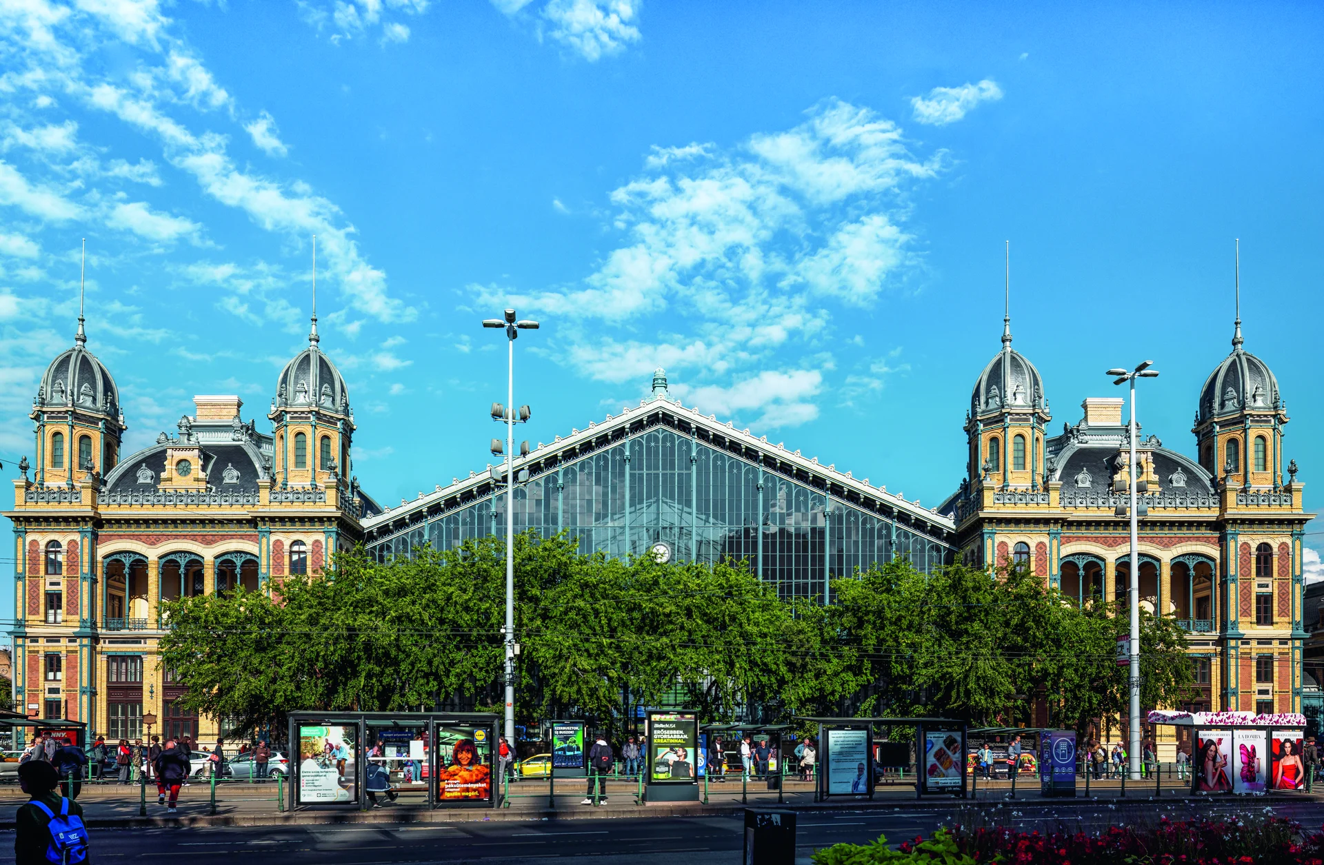 Budapest egyik legizgalmasabb ipari-építészeti alkotása 1877-ben nyílt meg az Osztrák Állami Vasút üzemeltetésében. A tervezést August de Serres és Bernhardt Győző végezte, a kivitelezésben pedig a Gustave Eiffel nevével fémjelzett mérnökiroda játszott meghatározó szerepet. Az épületet a korábban ott álló indóház köré, illetve fölé építették, így az a munkák végéig működött. A pályaudvar legnagyobb újítása a hatalmas vas- és üvegszerkezetű csarnok volt, amely öntöttvas oszlopokra és rácsos tartókra támaszkodik, ez a kialakítás szépen szemlélteti a 19. század végének mérnöki tudását. A technikai modernitást historizáló kőhomlokzat egészíti ki, városi palotává emelve a közlekedési épületet. A pályaudvar különleges értéke az egykori királyi váróterem, amely gazdagon díszített, reprezentatív belső kialakításával kifejezte az uralkodóház rangját. 2020 és 2023 között a MÁV átfogó felújítást finanszírozott saját forrásból, amely során megőrizték a pályaudvar építészeti és műszaki történeti értékeit, miközben korszerűsítették a vasútüzemi berendezéseket.