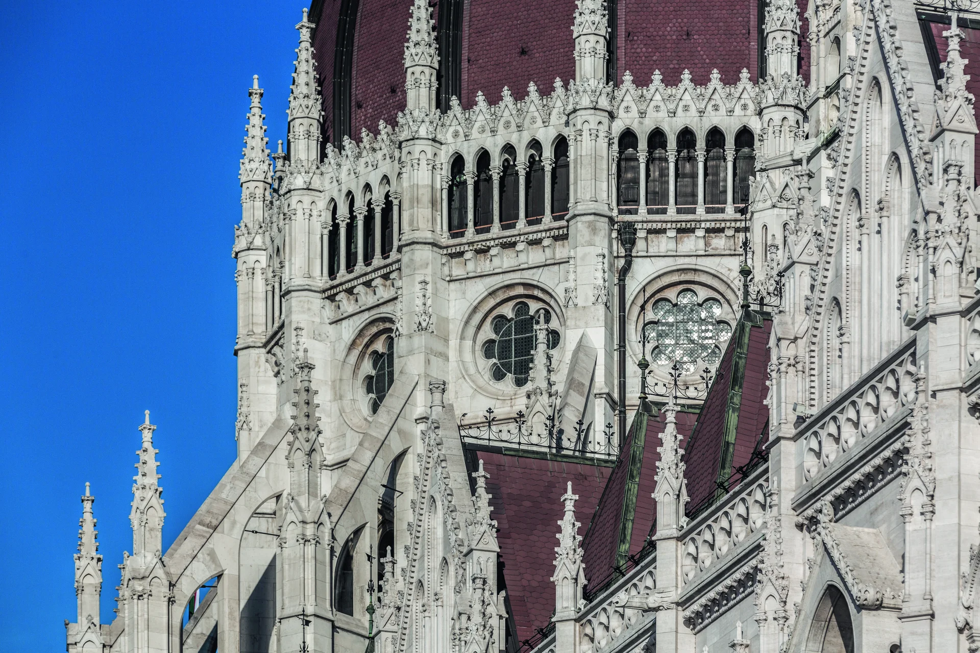 Az Országház Budapest legismertebb épülete és a magyar államiság egyik legerősebb szimbóluma, megszületésének gondolata a kiegyezés után mégis sokáig váratott magára. Bár az országgyűlés ideiglenes helyszíneken működött, az önálló parlamentépület ügye csak 1880-ban került napirendre. A döntés súlyát jól mutatja, hogy kimondták, „a megvalósítást pénzügyi tekintetek nem korlátozhatják”. Tisza Kálmán miniszterelnök a pályázat előkészítésekor tájékozódásképpen beszerezte a bécsi és a londoni parlament terveit. A cél az volt, hogy a korszak legkorszerűbb megoldásait tanulmányozzák, ugyanakkor azt is világossá tették, hogy a magyar Országház semmiképp sem hasonlíthat versenytársára, a bécsi Parlamentre, ezért az ajánlott stílusok közül egyedül a klasszikus görög maradt ki. Az 1882-ben kiírt tervpályázatra mindössze 19 pályamű érkezett. Ez meglepően alacsony szám volt egy ilyen rangú megbízás esetén. Ennek oka az volt, hogy a pályázat közvetlenül a berlini Reichstag versenye után zajlott, így a nagy építészirodáknak nem maradt kapacitásuk egy újabb hasonló volumenű terv kidolgozására. Ráadásul a magyar pályázat nem kapott valódi nemzetközi publicitást sem, így külföldön alig szereztek róla tudomást. Érdekesség, hogy Steindl Imre maga is indult a Reichstag pályázatán, ahol egy kupolás tervet adott be, és ennek tapasztalatait később az Országház kialakításánál is hasznosította. A zsűri több tervet díjazott, de a végső választás Steindl neogótikus elképzelésére esett – főként Andrássy Gyula támogatásának köszönhetően, aki a londoni Parlamenthez hasonló stílusban képzelte el a magyar törvényhozás otthonát. Az elképesztő léptékű építkezés 1885-ben indult. Tizenhét éven át átlagosan ezer ember dolgozott rajta, 176 000 m3 földet mozgattak meg, 40 millió téglát, félmillió díszkövet és 40 kilogramm aranyat használtak fel hozzá. Steindl eredetileg téglahomlokzattal tervezte az épületet, amelyet színes kerámiadíszek oldottak volna, barátságosabb, festőibb hatást keltve. A funkció súlya és reprezentatív jellege miatt azonban végül a tekintélyesebb kőburkolat mellett döntöttek. A téglás megoldás mégsem tűnt el teljesen, az udvari homlokzatokon Steindl megvalósíthatta elképzelését, ott kerámiadíszekkel kiegészített téglafelületek jelennek meg. Az épület 1896-ra kívülről elkészült, belül azonban még csak a díszlépcső és a kupolaterem állt. Az ezredéves ünnepségek idején így is itt tartották az országgyűlés ünnepi díszülését, amelyen törvénybe iktatták az államalapítás millenniumi évfordulóját. Teljes egészében 1902. október 8-án vették használatba az épületet, ám ezt Steindl már nem érhette meg, néhány héttel korábban elhunyt. De ekkor még mindig nem volt teljesen kész, a belső munkák 1904-ig folytatódtak. A 265 méter hosszú, 96 méter magas Országház tömege szimmetrikusan szerveződik. A két ülésterem egymás tükörképe, hiszen a korszakban még kétkamarás országgyűlés működött. Az egyik terem az alsóház, a másik a felsőház számára készült. Közöttük emelkedik a kupola, amely a királyságot és a Szent Koronát jelképezi. A gótikus tornyok, fiatornyok és kőfaragványok festői együttese lenyűgöző egységet alkot. A belső terek vasvázas technikája tette lehetővé azokat a térformákat, amelyek a középkori gótikában technikai okokból nem létezhettek. Ilyen a csillagboltozatos kupolaterem vagy a rendkívüli fesztávú, többkarú díszlépcsőház. Utóbbi térszerkezete kifejezetten barokkos hatású, ami jól mutatja a historizmus alkotói szabadságát és a stílusok tudatos keverését. Az épületet kívül-belül összesen 242 szobor díszíti, ám ezek nem önálló művészi bravúrok. Steindl tudatosan a korszak középmezőnyéből választott szobrászokat, mert az épület egészének alárendelt, ikonográfiai programba illeszkedő alakokat akart, amelyek nem terelik el a figyelmet magáról a nagy műről, az Országházról. A Dunára néző homlokzaton magyar királyok, fejedelmek és hadvezérek sorakoznak, míg a kupolacsarnokban tizenhat történelmi uralkodó szobra áll baldachin alatt. A homlokzatokon különös figurák is megjelennek, az úgynevezett „majomkutyák”, amelyekből összesen 107 darab látható az épületen, nagy részük zászlótartóként és fáklyatartóként funkcionál. Arcukat macska- és majomfélék vonásaiból formálták meg Marhenke Vilmos szobrászműhelyében, az épület gótizáló hangulatát erősítendő. A belső tér díszítése különösen gazdag. Steindl apja, Steindl Károly ékszerész és aranyműves volt, a műhelyében töltött évek hatására az építész különösen vonzódott a polikrómia és az aranyozás világához. Ez az ízlés az Országház egész enteriőrjét áthatja, színes üvegablakokkal, festett boltozatokkal, aranyozott részletekkel és Zsolnay kerámiákkal. A díszlépcsőház mennyezetét Lotz Károly allegorikus festményei díszítik, amelyek a Törvényhozás és Magyarország apoteózisát jelenítik meg. A társalgókban Vajda Zsigmond mennyezetképei idézik fel a magyar mondakört és királylegendákat, míg a Vadászteremben Körösfői-Kriesch Aladár szecessziós falképei láthatók. Steindl nem tűrt meg önálló, túl hangsúlyos műalkotást az épületben. Ebből származott konfliktusa Munkácsy Mihállyal is, akinek Honfoglalás című festményét a közvélemény nyomására rendelték meg a képviselőházi ülésterem számára. Steindl szerint a monumentális kép megbontotta volna a terem harmóniáját, ezért nyíltan fellépett az elhelyezése ellen, és végül sikerrel is járt. A festmény csak 1929-ben került be az Országházba, addig a Szé