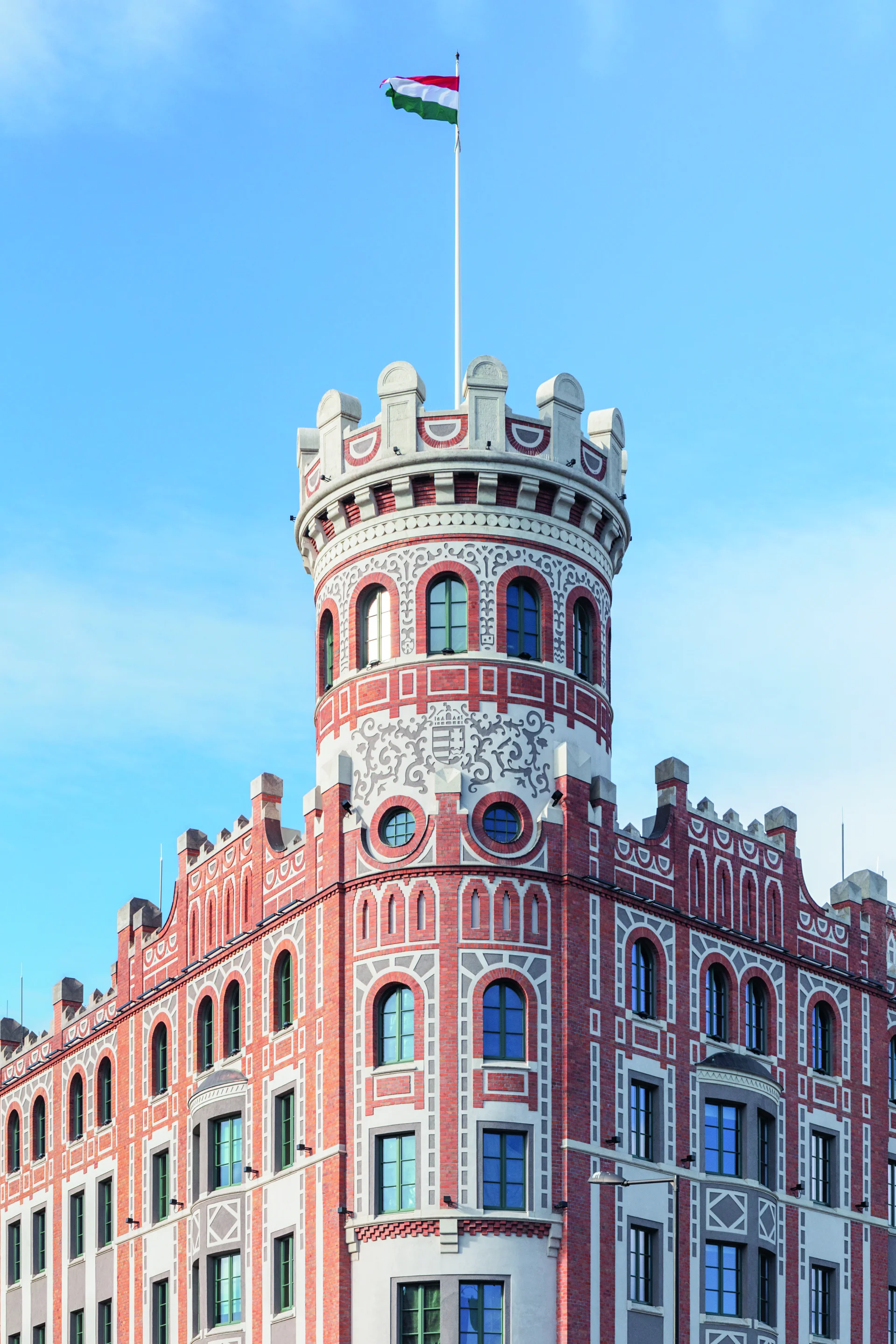 A Széll Kálmán tér feletti dombon álló impozáns épület – eredetileg a Magyar Királyi Posta- és Távírda Igazgatóság – tervpályázati felhívása 1923-ban jelent meg. Az évszám nem véletlen. A Trianon után szétszakadt országban prioritást élvezett a korszerű távközlés kiépítése. A győztes tervet Sándy Gyula, „a napsugaras tornyok építésze”, egyben a vasbeton szerkezetek mestere jegyezte, akinek munkásságát a téglaépítészet hatása és a várszerű formákkal való kísérletezés is jellemezte. Mindezek az 1926-ban átadott épületen is tetten érhetők. A Postapalota megjelenését a tégla és a fehér vakolat váltakozásán túl a felületek átkarcolásával játszó, úgynevezett sgraffito technikával készült homlokzati ornamentika határozza meg. A második világháborúban, illetve az 1956-os forradalomban is súlyosan megsérült igazgatóságot a Magyar Posta 2008-ig használta. A Magyar Nemzeti Bank tulajdonába került épület nagyszabású felújítása 2022-ben fejeződött be. A műemléki értékek helyrehozatala mellett az épületet kortárs részletekkel is kiegészítették, ezek közül leglátványosabb az udvar fedése. Az alsó szinteken nyílt meg a látványos Pénzmúzeum, ami a tervező építészről elnevezett Sándy köz felől közelíthető meg.