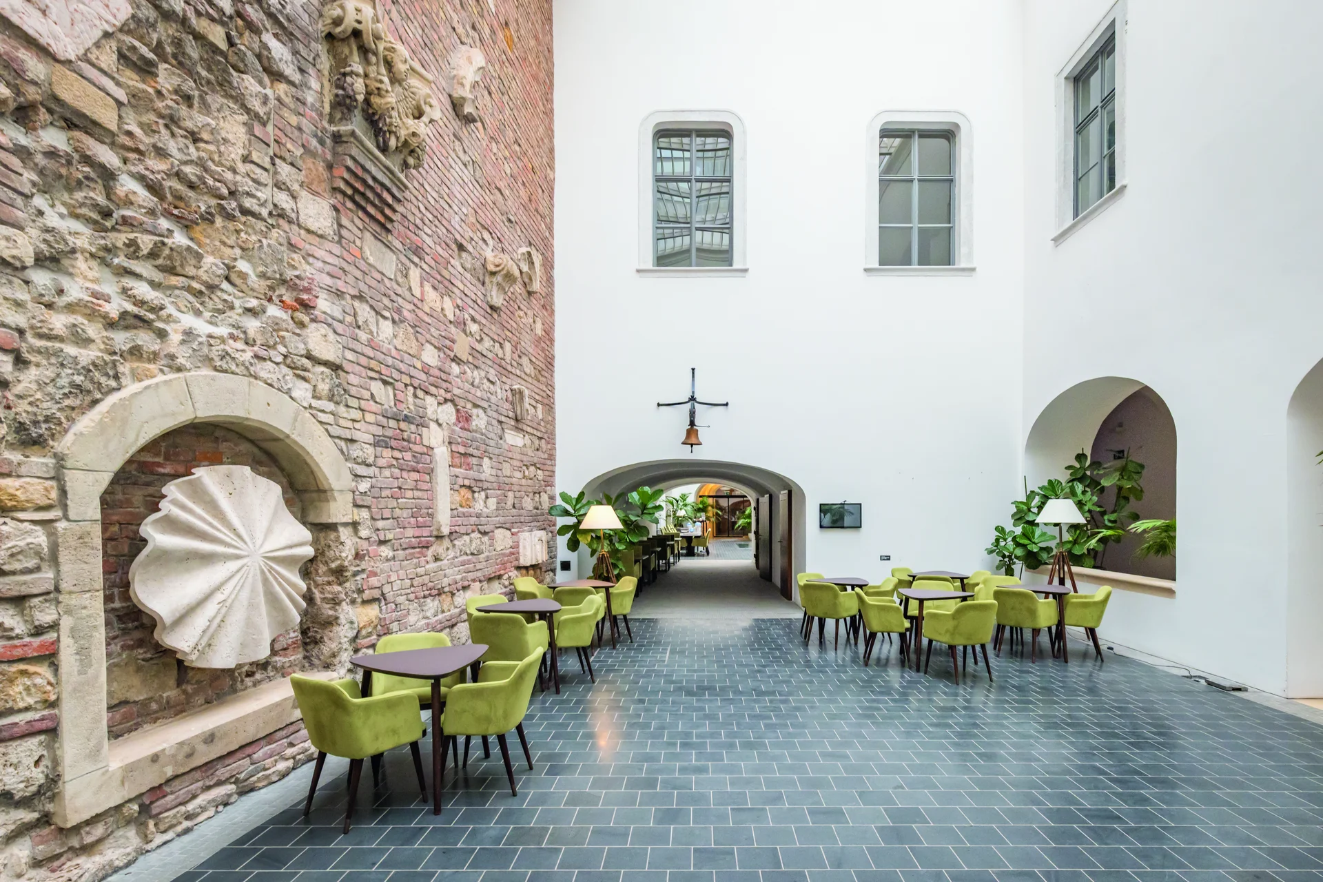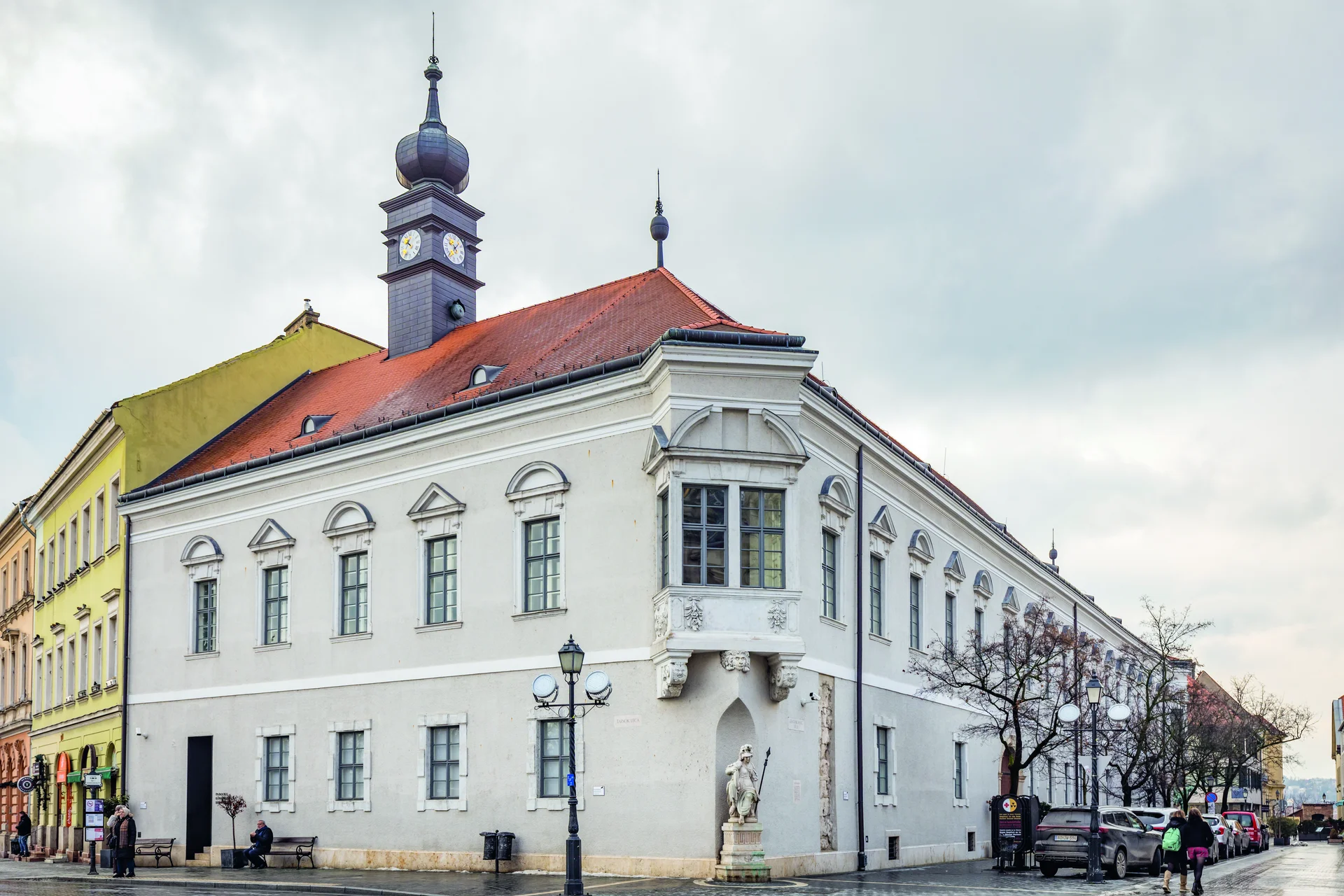 A budai várnegyed főterén álló városházát röviddel a török alóli felszabadulás után, Venerio Ceresola olasz hadmérnök-építész tervei szerint kezdtél el építeni. A három utcára néző épület faragott ablakkereteivel valóban az itáliai barokk hangulatát árasztja magából. A gyarapodó, újjáépülő város számára az épület pár évtized elteltével szűknek bizonyult, ezért Nepauer Máté, számos budai palota és templom építészének vezetésével kibővítették. Többek között ekkor készült el a gyönyörű rokokó lépcsőház, valamint a jellegzetes sarokerkélyek. Ebben az időszakban helyezték el a tér felőli fülkében a városvédő Pallasz Athéné szobrát, Carlo Adami alkotását, ami mára a magyar város- és műemlékvédelem jelképévé vált. Az épület Budapest létrehozásakor funkcióját vesztette, és a megújulásra egészen 2018-ig kellett várni. A Pallas Athéné Domus Meriti Alapítványnak helyet adó épület udvarát lefedték, bemutatták a feltárt középkori részeket, a restaurálás a barokk kőelemek mellett olyan apró részletekre is kiterjedt, mint a toronyóra számlapja.