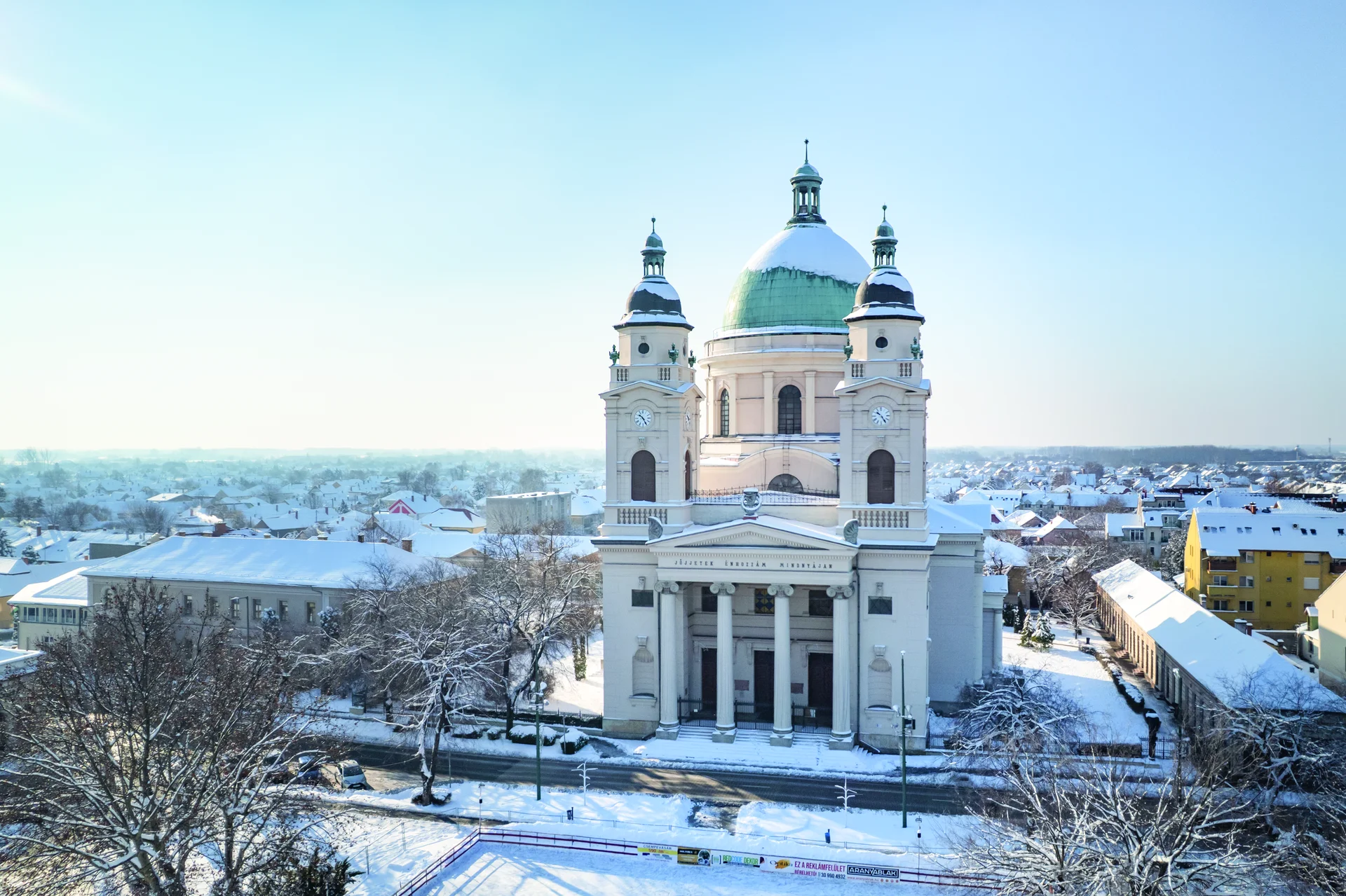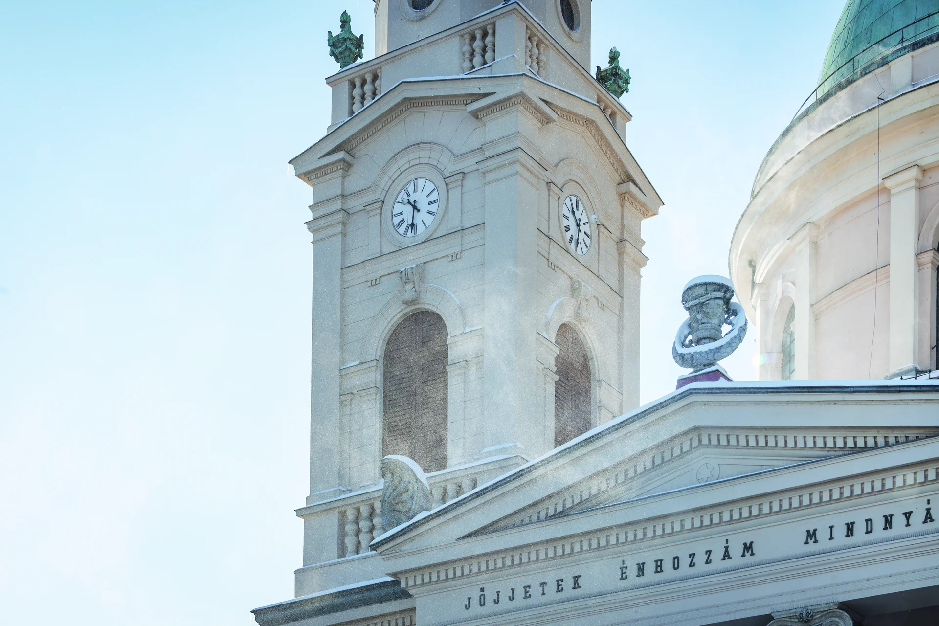 A ceglédi templom sziluettje a hatalmas rónán messziről is jól látható. A kettős tornyú, magas kupolájú épület tervezése a várost elpusztító 1834-es tűzvész után indult meg. A megbízást a korszak egyik legjobb építésze, Hild József kapta, de a munkálatok csak lassan haladtak, Kossuth Lajos egy szinte csupán félkész templom előtt mondta el híres toborzóbeszédét 1848 őszén. Egészen 1870-ig kellett várni, hogy felavassák a Hild terveitől kissé eltérő épületet, de a tetőzet még ekkor is csak ideiglenes volt. A már állandó, 1896-ban Balázs Ernő tervezte görögös hatású lapos kupola is furcsán, idegenül hatott a két karcsú torony között. Ennek sorsát az 1936. augusztus 6-i tűz pecsételte meg, ami épp az épület felújítása közben keletkezett. A beomló kupola két év múlva épült újjá a ma is látható formájában, Benedek Frigyes tervei szerint, ami így végre méltó megkoronázása lett Hild művének. A hányatott sorsú épület 2018-ban a reformáció napjára nyerte el megújult, fehér puritán formáját.