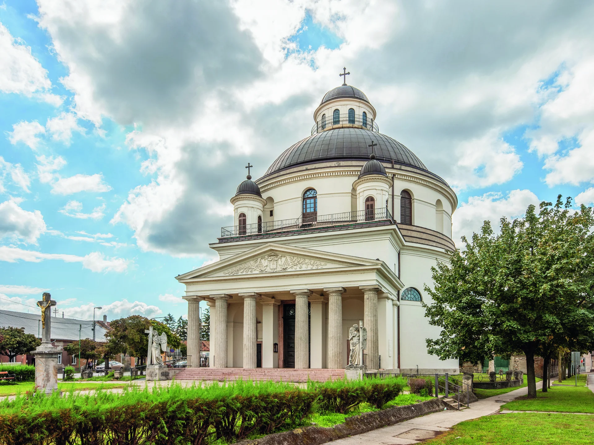 Az Esztergomba érkezőt egy különleges, a római Pantheonra erősen hasonlító templom fogadja. Tervezője, Packh János Rudnay Sándor érsek kérésére vette mintául a híres ókori épületet, igaz, annak szigorúan szerkesztett arányait megváltoztatta: az esztergomi templom magasabb és karcsúbb lett. És abban is különleges, hogy Packh a római épületre 1626-ban emelt és 1882-ben lebontott tornyocskákat is lemásolta, melyeket tervezője után csak Bernini szamárfüleiként emlegetett az olasz népnyelv. Így a kerektemplom a Pantheon egy, ma már nem látható állapotát idézi elénk. Packh János ekkor a bazilika tervein is dolgozott, így a templom az ahhoz készített tanulmánynak is tekinthető. Az Esztergom városképét meghatározó kerektemplom felújítását 2018-ra végezték el, a szemmel látható kőrestaurátori munkák és az eredeti árnyalatot követő vakolás mellett kicserélték a kupola favázának több mint felét, és aranyló vörösréz lemezzel burkolták a külső héjazatát. A több szempontból is különleges épület így újra eredeti szépségében áll Esztergom kapujában.
