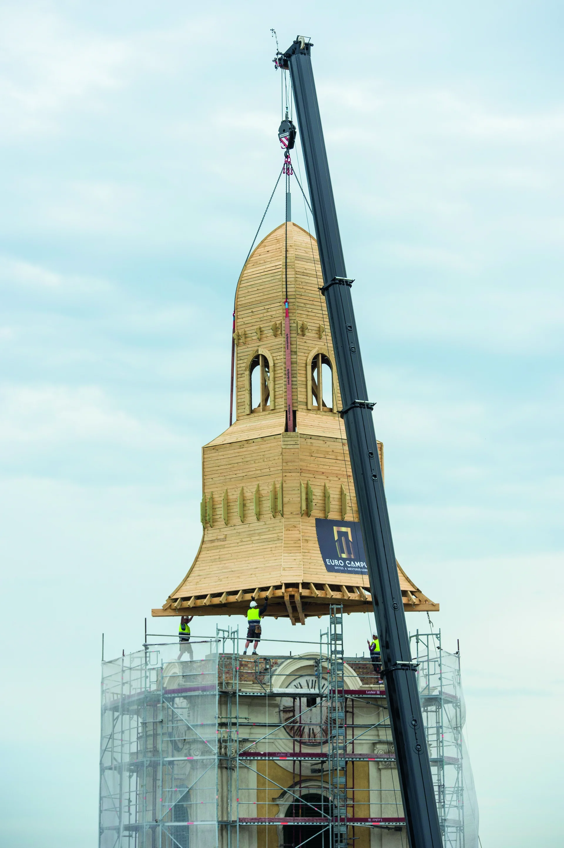 A Mátra alján fekvő város jelképe a hosszúkás főtér végében álló, annak képét nagyban meghatározó katolikus templom. Az impozáns gótikus épületet a török háborúk elmúltával barokk stílusban jelentős mértékben átépítették, ebben az időszakban emelték a két, egymástól szokatlanul távol álló tornyot, melyeket díszes sisakok koronáztak, illetve a legutóbbi felújítás óta újra koronáznak. Az épület ugyanis a város nagy részével együtt 1917. május 21-én leégett, így a sisakok is a lángok martalékává váltak. A templom a várossal együtt újjáépült, a tornyokat azonban pontosan száz évig csupán ideiglenesnek szánt védőtető fedte. A hosszú idő óta várt felújítás szinte minden mozzanata rendkívül látványos volt, elsőként a védőtetőket emelték le, majd elkészültek a már önmagukban is monumentális, tizenhét tonnás és tizennyolc méter magas, vagyis hat emelet magasságú ácsszerkezetek, amiket daruval emeltek végső helyükre. Ezt követte az apró részletekre is kiterjedő díszműbádogos rekonstrukciós munka, aminek eredményeképpen Gyöngyös egy évszázad után visszanyerte régi városképét.