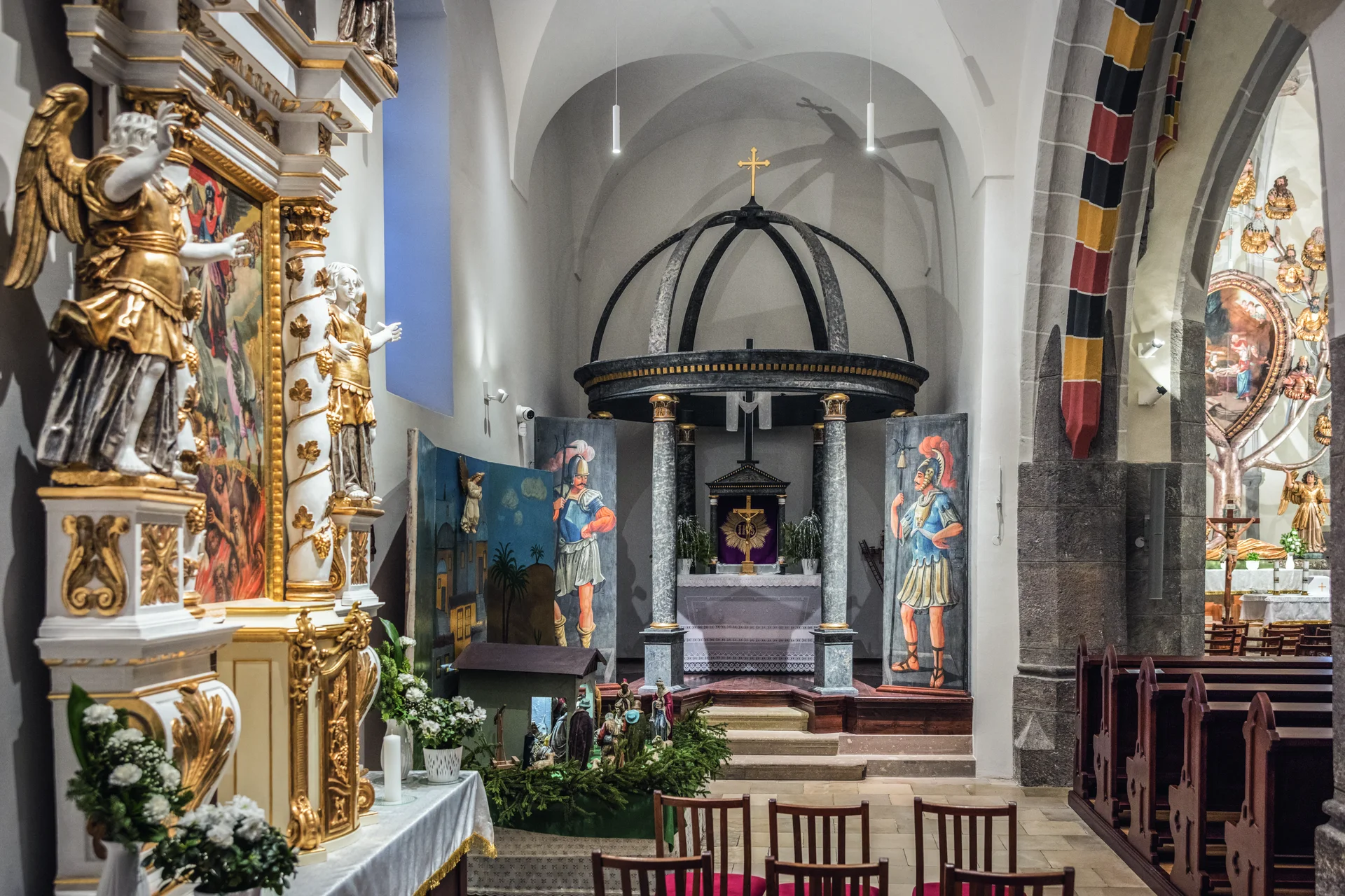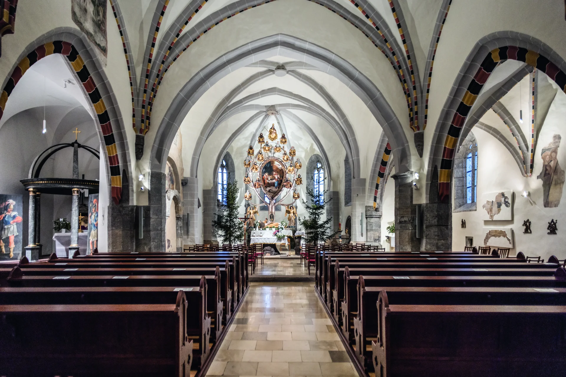 Gyöngyöspata római katolikus temploma a középkori magyar építészet ritka épségben fennmaradt emlékei közé tartozik. A Magyarországon páratlan Jessze-oltáron kívül egyedisége, hogy a különböző korszakok során hozzáadott szerkezeti és stílusbeli rétegek nem elfedték, hanem gazdagították az eredeti formát. A templom története a 12. századig nyúlik vissza. A mai épület északnyugati szegletében feltárt alapfalak tanúsága szerint eredetileg egy kis méretű, félköríves szentélyű román stílusú templom állt itt, amelyet a 13. században toronnyal és az északi oldalon a Szent András-kápolnával bővítettek. A templom igazi virágkora a 14. századra, a Nekcsei család birtoklásának idejére tehető. Nekcsei Demeter, Károly Róbert tárnokmestere, a Nekcsei-biblia megrendelője a bolognai iskolázottságú Hertul mesterrel díszíttette a szentélyt – e freskók töredékei ma is láthatók. A gótika jegyében a templom terét háromhajóssá bővítették, és a 15. század végére elnyerte mai, impozáns formáját. Ekkor épült a nyolcszögletű torony, ennek különlegessége a tetején körbefutó, barokk kori fatornác. A belső teret késő gótikus hálóboltozat fedi, melynek bordáit emberfejeket mintázó, maszkszerű konzolok tartják, mintha a múlt néma tanúi figyelnék a belépőt. A templom legféltettebb kincse az Európa-szerte ritkaságnak számító fa Jessze-oltár. A 17. század közepén, a török hódoltság utáni újjáépítéskor lengyel mesterek faragták ezt a 8 méter magas, lenyűgöző alkotást. Az oltár nem hagyományos felépítésű: a bibliai családfát ábrázolja plasztikus formában. Az oltárasztalon életnagyságú szoborként fekszik Jessze – vagy ahogy a pataiak hívják: Jekse –, Dávid király apja. Törzséből hatalmas fa sarjad, melynek szerteágazó ágain Jézus ószövetségi ősei, királyok és próféták ülnek. A fa koronájában, az ágak ölelésében Mária trónol a Gyermekkel, mintegy megkoronázva a nemzetséget. A középső festmény Mária születését ábrázolja. Bár az oltár eredetileg élénk színekben pompázott, egy 1868-as tűzvész utáni restaurálás során kapta a ma látható, elegáns fehér-arany felületét. A templom az elmúlt években története legátfogóbb rekonstrukcióján esett át. A 2020-ban induló munkálatokra égető szükség volt, a szakemberek ugyanis életveszélyes statikai hibákat tártak fel: a gótikus bordaívek elváltak a boltozattól, és csúszni kezdtek lefelé. A restaurátorok közel száz bordaívet rögzítettek újra, a falakat pedig speciális „falvarrás” technikával és több száz méternyi szerkezeti megerősítéssel stabilizálták. A Jessze-oltárt, valamint a mellékoltárokat is restaurálták, így újra eredeti fényükben ragyognak. Falszárító rendszer beépítésével megszüntették a falak vizesedését, a freskók visszanyerték régi színeiket, megújult a műemlék orgona, és a teret ma már új, gótikus formavilágú ólomüveg ablakok világítják meg. A modern kor igényeinek megfelelően a padlózat alatt korszerű fűtésrendszert építettek ki, a hívek kényelmét pedig új, fűthető padsorok szolgálják.