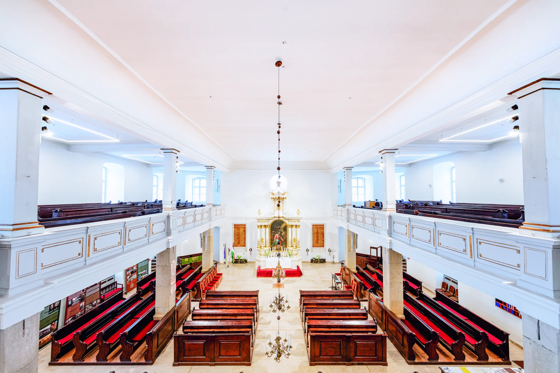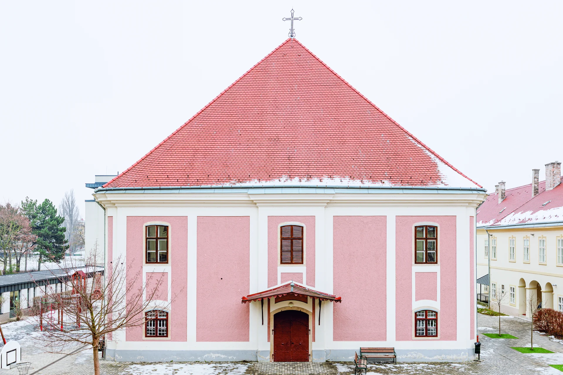 Insula Lutherana, vagyis evangélikus sziget. A régi pesti, győri polgárok így nevezték az alapvetően katolikus városok „tengerében” megbúvó evangélikus egyházi épületegyütteseket. Győrben az Újvárosban, az Evangélikus Konvent udvarán épült fel a templom 1784–85-ben. Az épület a türelmi rendelet után kialakult, német nyelvterületen Toleranzkirchének nevezett típus egyik legszebb példája. A templomnak a rendelet előírásainak megfelelően nincs sem tornya, sem utcai bejárata. Az egyetlen téglatestből álló késő barokk épület magasságának nagyobbik felét a meredek tető teszi ki, ami így alapvetően meghatározza az összképet. A szigorú előírások ellenére a templom megejtően elegáns, a homlokzatok finoman tagoltak, különösen szépek a földszinti ablakok rácsai. A karzatos belső tér legfőbb dísze az evangélikus hagyományoknak megfelelően egybeépített szószékoltár. Az Insula Lutherana együttesét a reformáció ötszázadik évfordulójára, 2017-re teljeskörűen felújították. A Konvent egykori épületében ma iskola és óvoda működik, így az udvarban álló templomot eleven élet veszi körül.