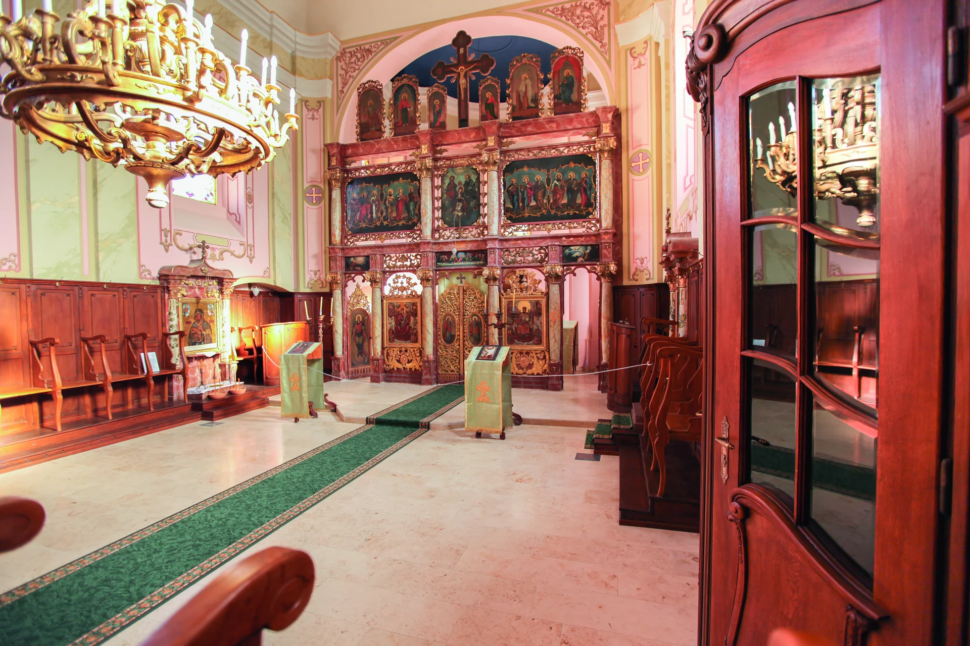 A város ortodox temploma II. József türelmi rendeletének köszönhető második templomépítési hullám emléke, ami virtuózan ötvözi a késő barokk egyházi építészetet az ortodox liturgiához kapcsolódó hagyományokkal. A 18. század elején betelepülő szerb családok a század végére a város tiszteletreméltó és tehetős kereskedőivé váltak. A templom felépítését az ő anyagi támogatásuk tette lehetővé. Az Istenanya születésének tiszteletére, 1792-ben felszentelt egyhajós épület tornya 1806-ban készült el, és 1889-ben nyerte el mai formáját, illetve bádoglemez borítását. Ékköve, az 1826-ból származó biedermeier faragványokkal keretezett ikonosztáz, a hazai ortodox egyházi művészet jelentős kincse. Különleges értéket képviselnek emellett a főként balkáni származású ikonjai és az 1614-ben készült Nagyheti Evangélium könyve. Az épület külső és belső felújításkor, mely során az ikonosztázt is restaurálták, egy időkapszula került elő a torony csúcsát díszítő gömb alól. A magyar és szerb nyelvű dokumentumokat tartalmazó irattartót 2012-ben a befejezett munka dokumentumaival kiegészítve helyezték vissza eredeti helyére, reményteljes üzenetet hagyva a jövőnek.