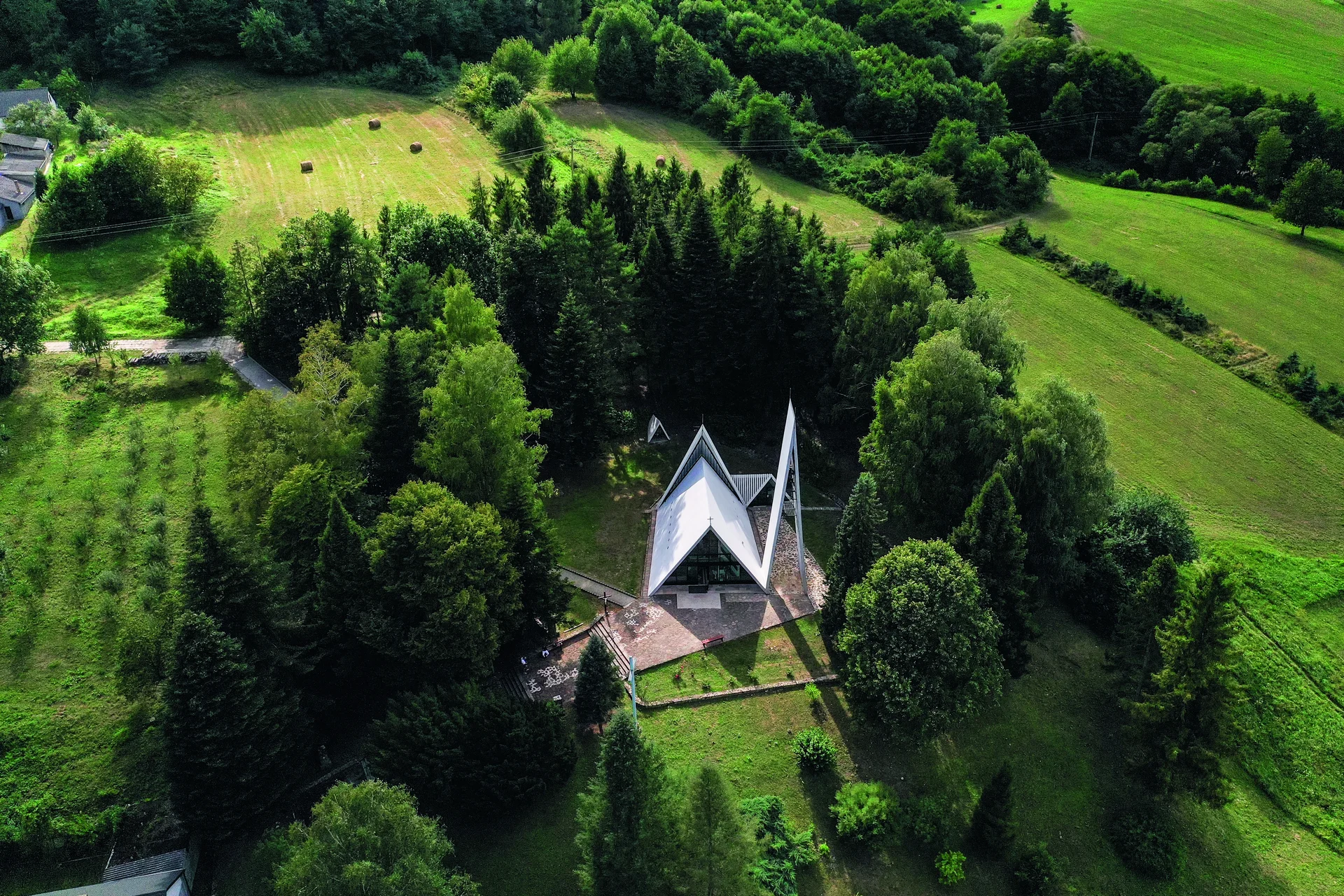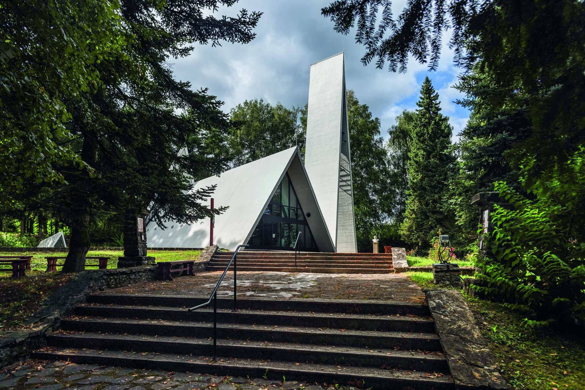 A porcelángyártásáról és rendkívül szép fekvéséről híres falu temploma egyike a szocializmus időszakában épült kevés egyházi épületnek. A régi templom épp a porcelángyár bővítésének esett áldozatul, így az állam kénytelen volt új épületről gondoskodni. A megbízást az IPARTERV, illetve az ott dolgozó, a cserépváraljai templommal már tapasztalatot szerző Csaba László kapta. Az Ybl-díjas mester visszaemlékezése szerint „az építész feladata csupán annyi, hogy le kell határolnia a Végtelen térből egy részt valamilyen emberi tevékenység számára. Ha az Istennel akarunk találkozni, akkor a térnek érzékelhetővé kell tennie Isten jelenlétét, segítve felemelkedésünket hozzá.” A hollóházi templom különleges geometrikus vasbeton elemeivel, egyedi megvilágítású belső terével valóban segíti ezt a találkozást. A karzatmellvéden Szász Endre helyi porcelánra festett táblaképei láthatók, a kerámiastációk Kovács Margit munkái. A 2012-ben műemlékké nyilvánított templom az átfogó felújítás óta fehér színben ragyog az időközben hatalmasra nőtt fenyők között.