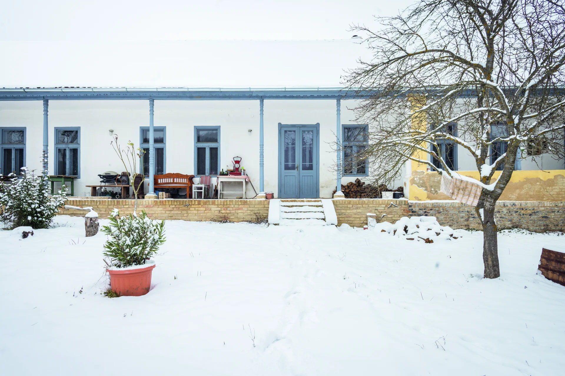 A tolnai Kalaznó története hasonló sok magyarországi sváb településéhez: a török után betelepedő németek hamarosan felvirágoztatták a százötven év alatt pusztává lett vidéket, majd a második világháborús kitelepítések után épített örökségük rohamosan és többnyire gazdátlanul pusztult. A sváb portákra nemcsak a gazdagság, hanem az urbánus formák gyors átvétele is jellemző volt. Tulajdonosai kitelepítése után az épület is mostoha sorsra jutott: évtizedekig üresen állt, és később sem kapta meg a kellő odafigyelést. De a sok-sok éves elhanyagoltság után különleges gondossággal újult meg a Népi Építészeti Program keretében. Falkutatással határozták meg az eredeti színeket, a tönkrement ablakokat a meglévők alapján rekonstruálták, autentikus technológiával előállított mészfestéket használtak a vakoláshoz, és ami a leglátványosabb: visszaállították a tornác végén épült, hagyományosan csak az elhunytak utolsó útjára bocsátásakor kinyitott úgynevezett lélekajtót.