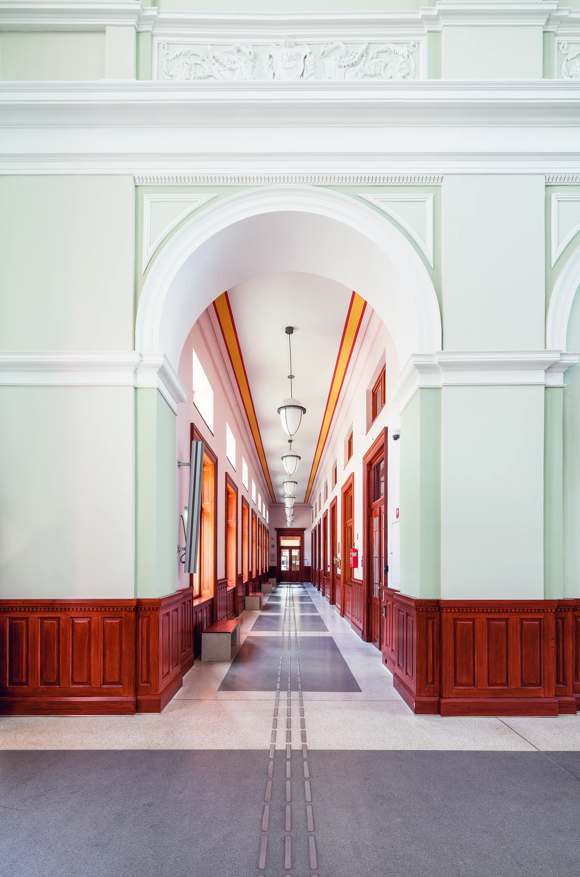 Pfaff Ferenc, a MÁV főépítésze a vasútállomások tervezésének valóságos virtuóza volt: számos város pályaudvarát alkotta meg Temesvártól Miskolcig. Az épületek között vannak egyediek, és vannak, melyek meglehetősen hasonlítanak egymásra. A somogyi megyeszékhely pályaudvara leginkább Szatmárnémeti és Versec állomásépületére hasonlít. A Pfaff-féle pályaudvarok a szépség és hasznosság összhangján alapulnak, az utas azonnal átlátja a logikus elrendezést. A középen kiemelt csarnokkal, kétoldalt emeletes pavilonokkal hangsúlyozott, sárgás-vöröses téglaépület a szomszédos színházzal és az azt övező parkkal különösen szép városépítészeti együttest alkot. A pályaudvar teljes, a vágányokat és a vasútüzemet is érintő felújítása 2017-ben indult. A 20. század második felének igénytelen, tervezetlen toldásait, hozzáépítéseit elbontották, így újra érvényesülhetnek az eredeti arányok. A külső homlokzatokat és a belső tereket a legapróbb részletekre kiterjedően restaurálták, sok helyen a szinte teljesen érintetlenül megmaradt verseci pályaudvarról véve a hiteles mintákat.
