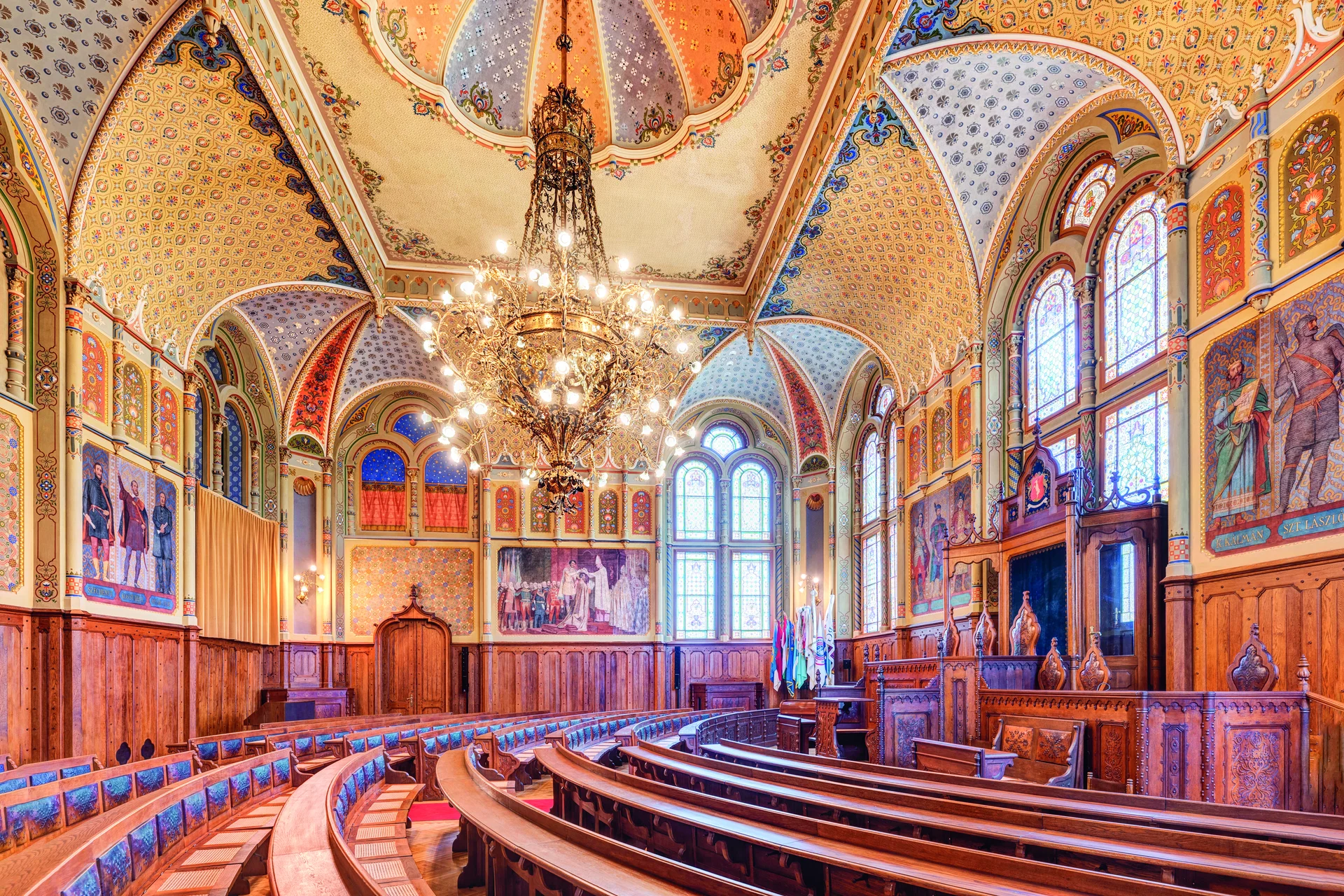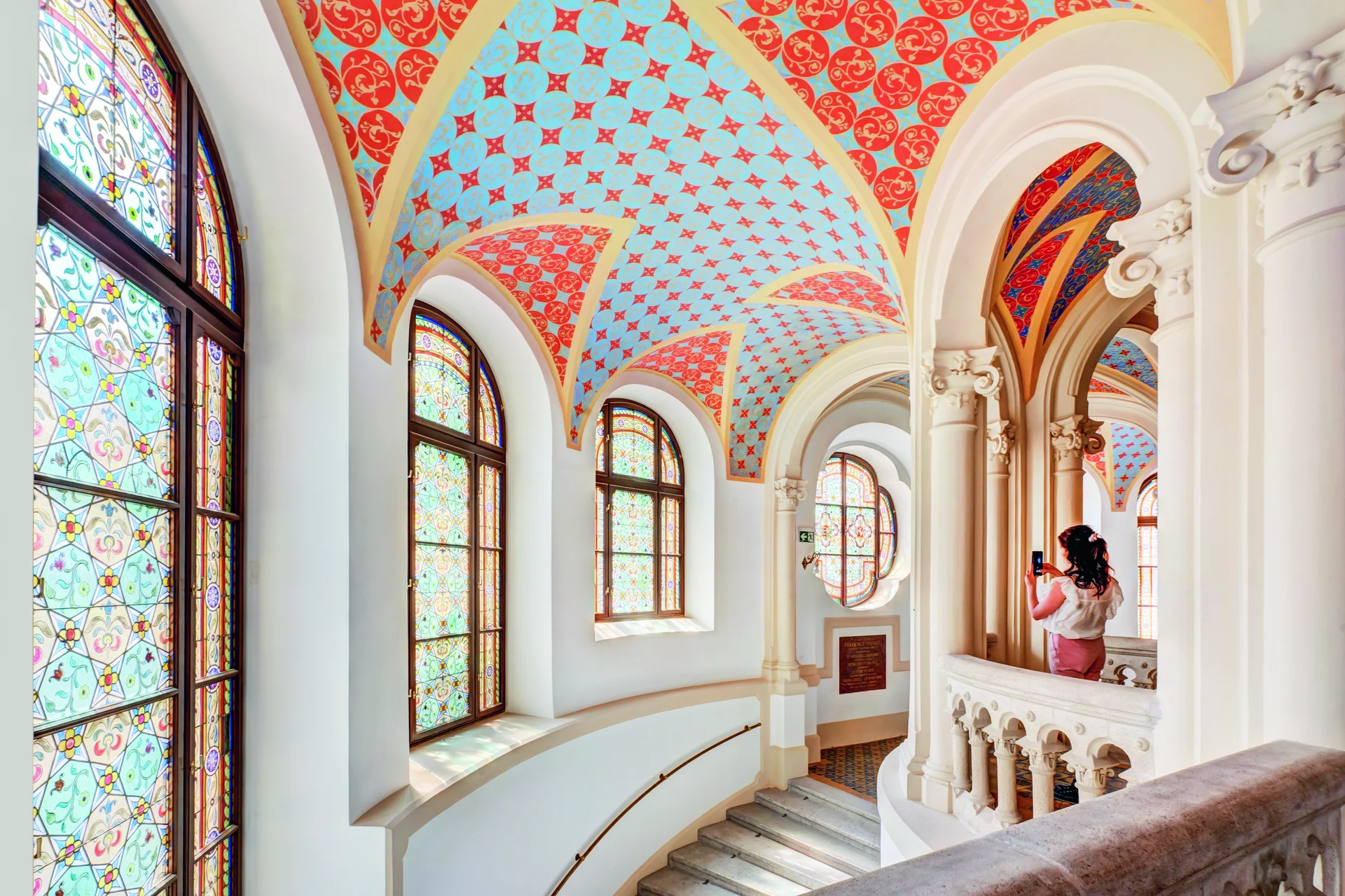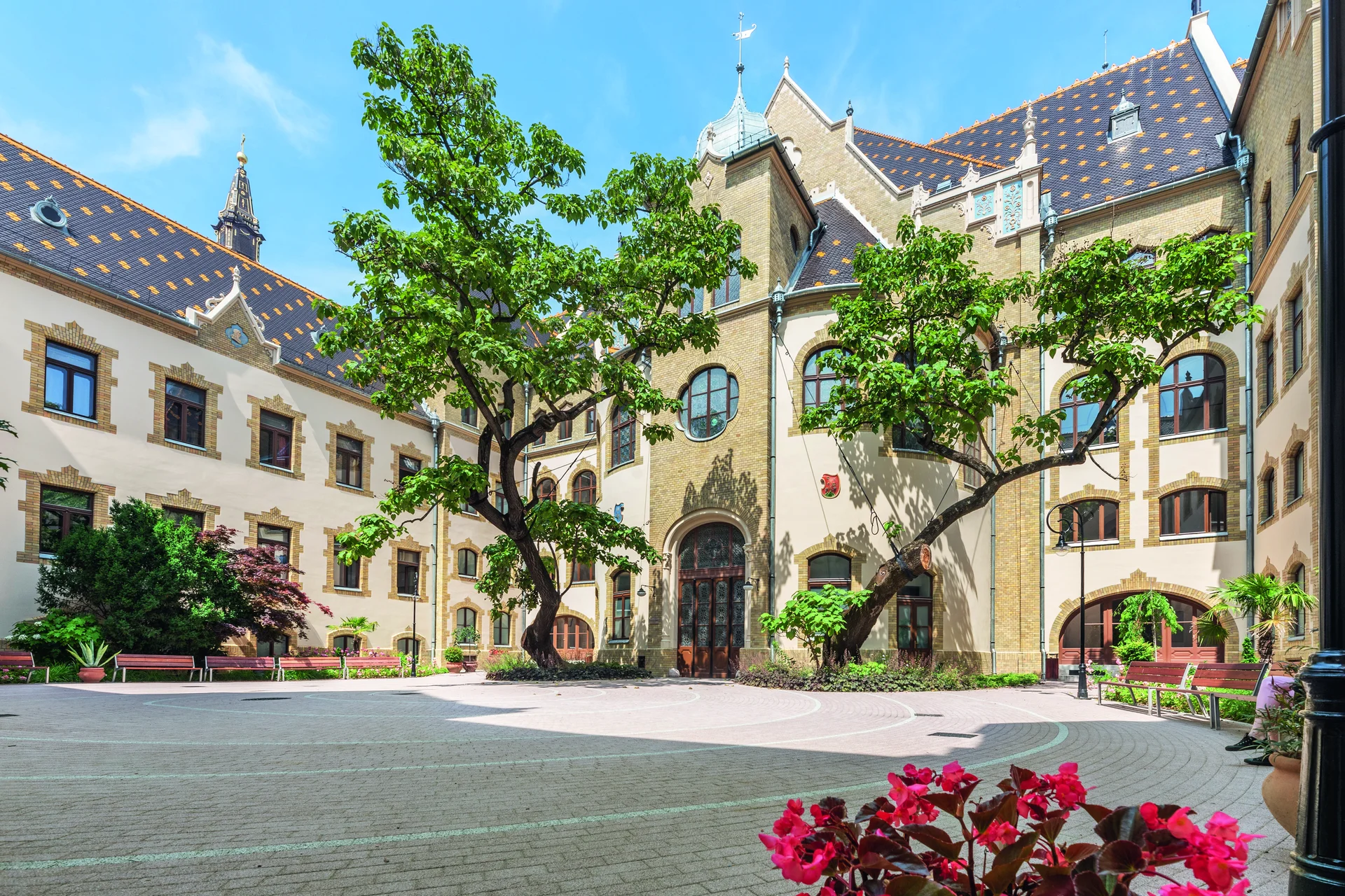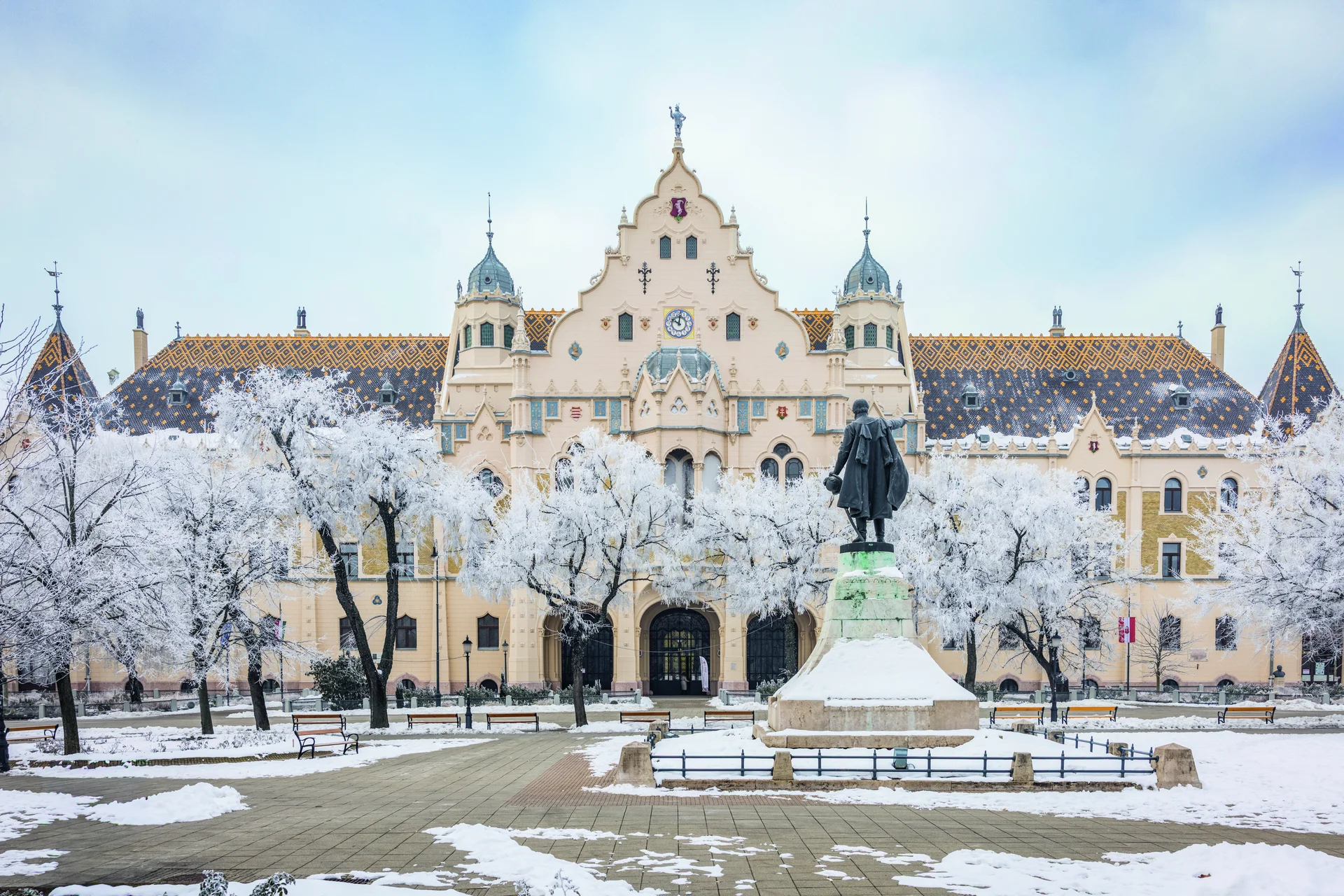 A mai Kossuth téren álló városháza hazánk egyik legismertebb építésze, Lechner Ödön alkotása. Helyén a korábbi városháza 1746-ban épült, amelyet 1806-ban bővítettek, de a 19. század közepére a megnövekedett hivatali igények miatt új épületre volt szükség. A város fejlesztése érdekében Lestár Péter, majd Kada Elek polgármesterek kezdeményezésére 1889-ben a városi közgyűlés új városháza építését határozta el. 1890-ben írták ki a tervpályázatot, mely szerint a régi helyén a keleti, északi és déli oldalain kétemeletes, nyugati traktusán egyemeletes épületet képzeltek el, amelyben egy külön udvar körüli fogdával a rendőrkapitányi hivatalt kívánták elhelyezni. De itt akarták berendezni az árvaszéket, a könyvelőhivatalt, az adóügyi, építészeti, gazdászati és pénzügyi osztályokat, valamint a levéltár, a főügyészi hivatal, a főispán és a polgármesteri hivatal helyiségeit is. A két tanácsteremmel és egy nagyobb közgyűlési teremmel kialakítandó épület földszintjén üzleteknek és gyógyszertárnak kívántak helyet adni. A héttagú bíráló bizottság szerint Lechner Ödön és társa, Pártos Gyula terve „a többi tervek közül kitűnik, és azokat határozottan felülmúlja”. Az első díjat így a „Sem magasság, sem mélység nem rettent” jeligéjű pályaművük nyerte el. A gyümölcsfeldolgozásból és korszerű kertészetből vagyont szerző város vezetése a legmodernebb, egyben nemzeti építészet mellett foglalt állást, amikor értékelte a pályázatot. Lechner az építkezéssel egyidejűleg a rá jellemző aprólékossággal elkészítette a részletrajzokat, a kilincstől kezdve a hátsó lépcső korlátjáig minden elemre kitérve. Az építész unokaöccse, Kismarty-Lechner Jenő a mesterről készített monográfiájában az épület stílusáról így ír: „a kecskeméti Városháza homlokzati és belső építőművészeti kialakításánál már merészebb ütemben haladt célja, egy nemzeti jellegű építőstílus megteremtése felé. A konstruktív váz még mindig a francia reneszánsz korai stíluskorszakának formavilágára épül, de szép reményekkel kecsegtető eredetiséggel és páratlan művészi fantáziával. Az épület homlokzatán már hangosan szóhoz jut a hazai földben gyökerező falburkoló kerámia mint építőanyag, amely egyszerű mintázási és öntési technikával, égethető mázas, időtálló, le is mosható, dekoratív szerepre szinte kínálkozik az építész kezében.”