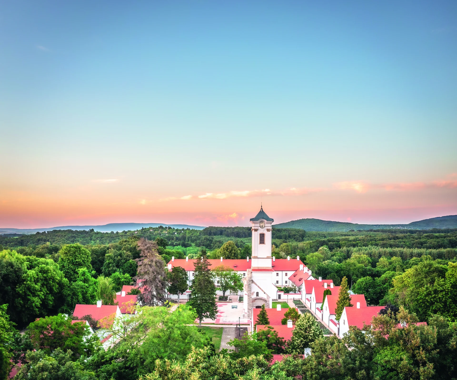 Hazánk egyik legkülönlegesebb műemlékegyüttese. Gróf Esterházy József 1733-ban adományozta a montecoronai kamalduliaknak a gesztesi uradalmán fekvő Majkpusztát szántóföldjeivel, erdőivel, legelőivel, halastavaival és malmaival együtt (távlati kép – torony, belső udvar, cellaházak)