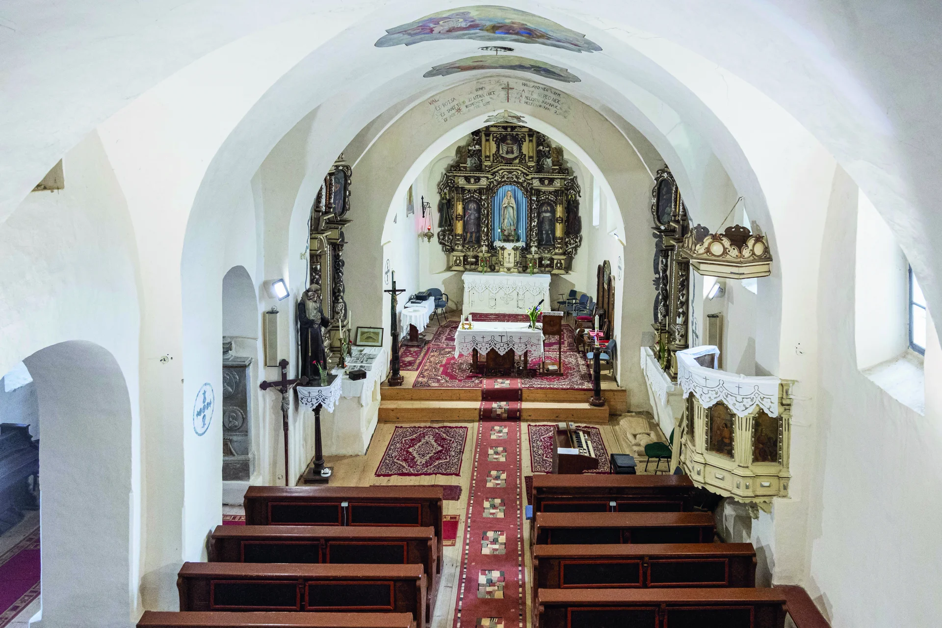 A katolikus lakossága miatt „Szentföldnek” nevezett Nyárádmente legfontosabb vallási központja a mikházi kolostor. A bosnyák ferences szerzeteseket Marosszék székely főkapitánya, Tholdalagi Mihály telepítette le 1635-ben, ezzel megalapítva – Csíksomolyó után – Székelyföld legfontosabb rendházát. A következő évtizedekben felépült egyszerű templom és a hozzá csatlakozó rendház az erdélyi „időtlen építészet” szép példája, egyszerre figyelhetők meg rajta középkori, reneszánsz és barokk formák. A messzire látszó torony a ferences hagyományoknak megfelelően hátul, a szentély mellett épült, a homlokzatokat csupán visszafogott festés díszíti, csak a főkapu kapott kiemelt, késő reneszánsz kőkeretet. A templomban szinte népies egyszerűségű barokk oltárok láthatók, valamint számos síremlék – a katolikus székely földesúri családok előszeretettel temetkeztek ide. A kolostor szellemi központtá vált, falai között 1669-től gimnázium is működött, a barátoknak több ezer kötetes könyvtáruk is volt. Az együttes legjelentősebb építészeti nevezetessége mégsem maga templom vagy a rendház, hanem az 1673-ban felállított első székelykapu, illetve annak másolata. Ez az azóta jelképpé vált építészeti elem prototípusa, a ferences barátok ugyanis olyan kaput ácsoltak, ahol a kocsibehajtót összefogták a gyalogos ajtóval, majd ezt egy galambdúccal koronázták. A ma látható kapu sajnos már csak az 1930-as évekből származó pótlás, ugyanis az eredeti 1912-ben egy viharban ledőlt, majd a Néprajzi Múzeumba szállították, ahol – ma már szerencsére szinte elképzelhetetlen módon, de – az 1960-as években kiselejtezték, így mára elpusztult. Csupán az egyik gerendája maradt fenn. A nagy múltú kolostort többször is felszámolták: elsőként II. József tiltotta be működését, de a 19. század elején újraalapították. Majd az államosítás után, az 1951. augusztus 20-ára virradó éjjelen deportálták a barátokat, aztán a kolostor épületében elmegondozót létesítettek. Az intézmény ma is itt működik, hosszú küzdelmek után a ferencesek csak két földszinti, a templomból megközelíthető szobát tudtak visszaszerezni, ahol 2020-ban a kolostor történetét bemutató kis múzeumot hoztak létre. A templom helyreállítása már a kétezres évek elején megtörtént magyar állami támogatással. 2017-ben egy apróbb, de fontos munka zajlott a Rómer Flóris Terv keretében: restaurálták a homlokzaton korábban feltárt, reneszánsz stílusú, úgynevezett sgraffito díszítéseket. A korszakban népszerű, itáliai eredetű technika lényege, hogy a különböző színű festékrétegeket lekaparják, így alakul ki a többnyire két árnyalatból álló, rendkívül dekoratív, emellett tartós díszítés. A templom így visszanyerte eredeti formáját, és annak ellenére, hogy a kolostort egyelőre nem lehetett újjáalapítani, Mikháza továbbra is a székelyföldi katolicizmus fontos központja.