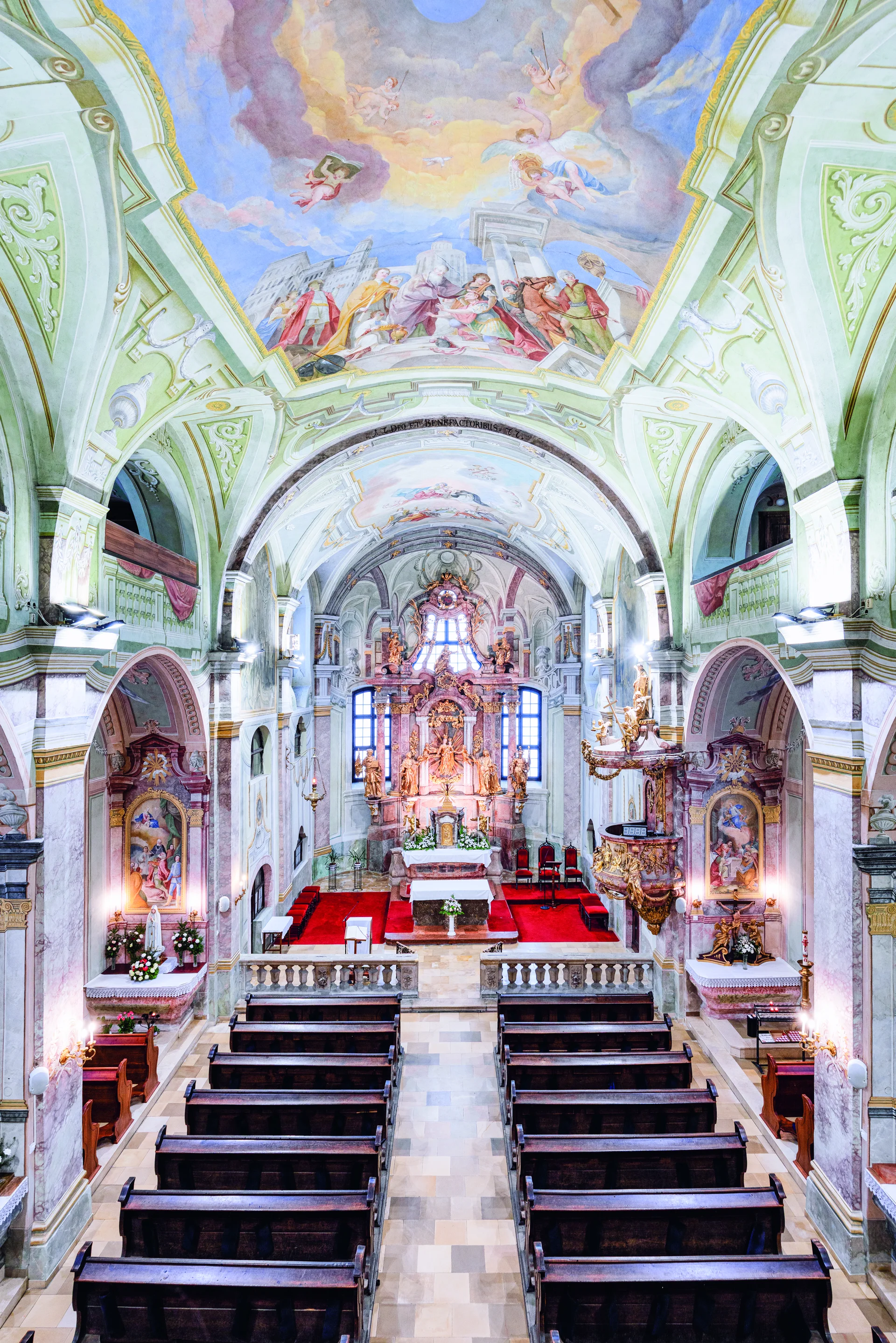 Magyaróváron (mely 1939-ig önálló település volt) még a román korban emeltek templomot, amelyet a 15. század folyamán gótikus stílusban átépítettek. A törökök fosztogatásai miatt az épület romos állapotba került, de a betelepülő német iparosok rendbe hozták, és 1619-ben Szent Gotthárd tiszteletére újraszentelték. Az akkor még kéttornyú templom ismét a törökök áldozatául esett, a 18. századi újjáépítés során emelték a ma is látható óratornyot és hozták létre a pompás barokk belsőt. Az épületben 1934-ben alakították ki a Habsburg-család óvári ágának kriptáját. A templom felújítására egy szlovák–magyar együttműködésen alapuló program keretein belül került sor. Ezzel egyidejűleg a mosoni városrész barokk temploma is megújult.