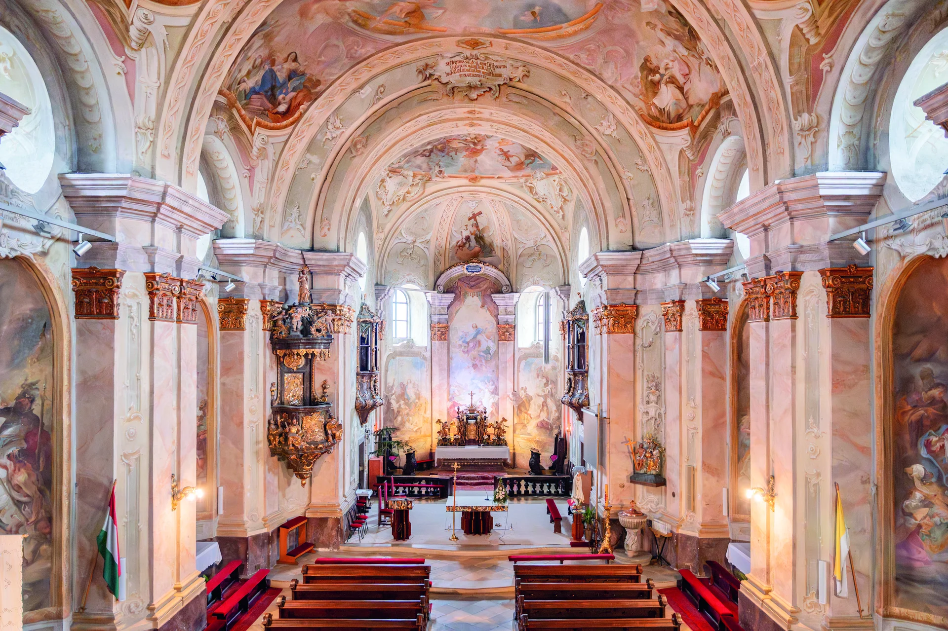 A sümegi templom művészeti értékeit jól mutatja, hogy a „rokokó Sixtus-kápolnának” is nevezik. Az elnevezés nem túlzás, a jeles festő, Franz Anton Maulbertsch világraszóló csodát alkotott. Az 1759-ben felszentelt templomot a nagy ellenreformátor veszprémi püspök, Padányi Bíró Márton építtette. Ő bízta meg az akkor harminchárom éves művészt a falak kifestésével. A viszonylag szerény, egytornyos homlokzat ámulatba ejtő belső teret rejt, a teljes felületet beborító freskók Ábrahám áldozatától Krisztus mennybemeneteléig mutatják be a megváltás folyamatát. A meghatóan szép karácsonyi jelenetben Maulbertsch önarcképét is észrevehetjük: oldalt látható, sajtot hozó pásztorként. A templom falán semmilyen szobrászati, plasztikus díszítmény nincs, a látványt kizárólag festészeti eszközökkel érték el. Az alakok között természetesen Padányi is feltűnik a dolmányos, bajuszos sümegi elöljárók társaságában. A templomot felszentelésének 260. évfordulóján, 2016-ban kezdték felújítani. A munkák során a tornyot, majd a homlokzatokat is helyreállították, a Maulbertsch-freskók restaurálására nem volt szükség.
