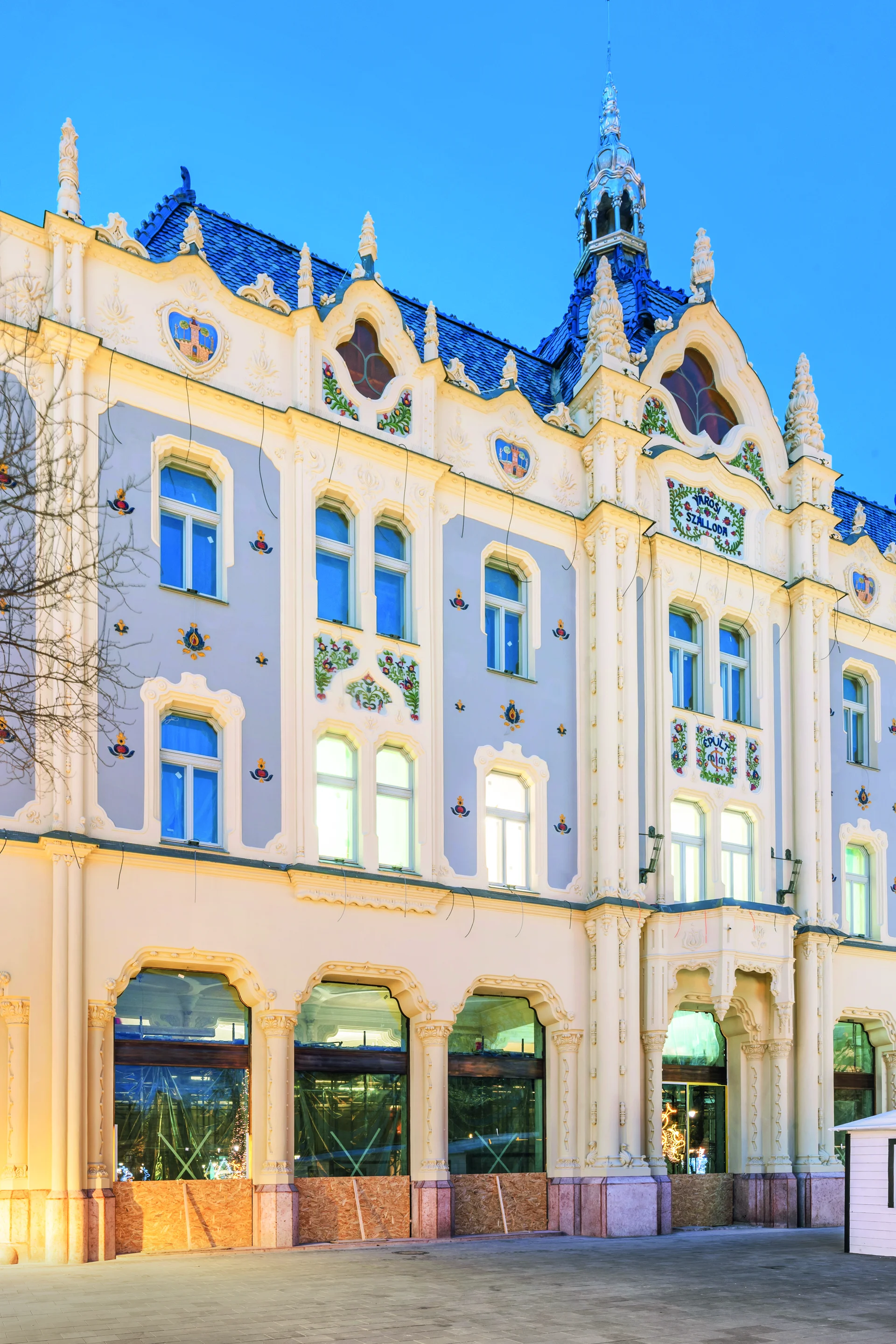 A város főterén álló Pannónia Szálló az egykori vármegyeháza helyén épült fel, miután 1897-ben tervpályázatot írtak ki egy magyaros jellegű hotel és vigadó építésére. A megmérettetésen Bálint Zoltán és Jámbor Lajos budapesti építészek nyertek, akik az utcai homlokzat felől kávézót és üvegmennyezettel ellátott éttermet, az udvar felől vigadót terveztek kocsibehajtóval, mindezt gyönyörű, szecessziós stílusban. Az 1901-ben indult kivitelezés után egy évvel már meg is nyitott az épület, amely le sem tagadhatná Lechner Ödön hatását. Amíg a földszinten vendéglátóegységek működtek, az emeleti részeken a mintegy ötvenszobás szálló kapott helyet. A később Dacia névre keresztelt szállodát az 1990-es években privatizálták, az épület állapota pedig rohamosan romlott. A felújítási munkálatok 2023-ban állami támogatással kezdődhettek meg, amelynek tervezésével Guttmann Szabolcs építészt bízták meg. Az épület eredeti szépségét helyreállító rekonstrukciós munkák 2025 őszén fejeződtek be, a megújult szálloda ma Hotel Indigo néven működik.