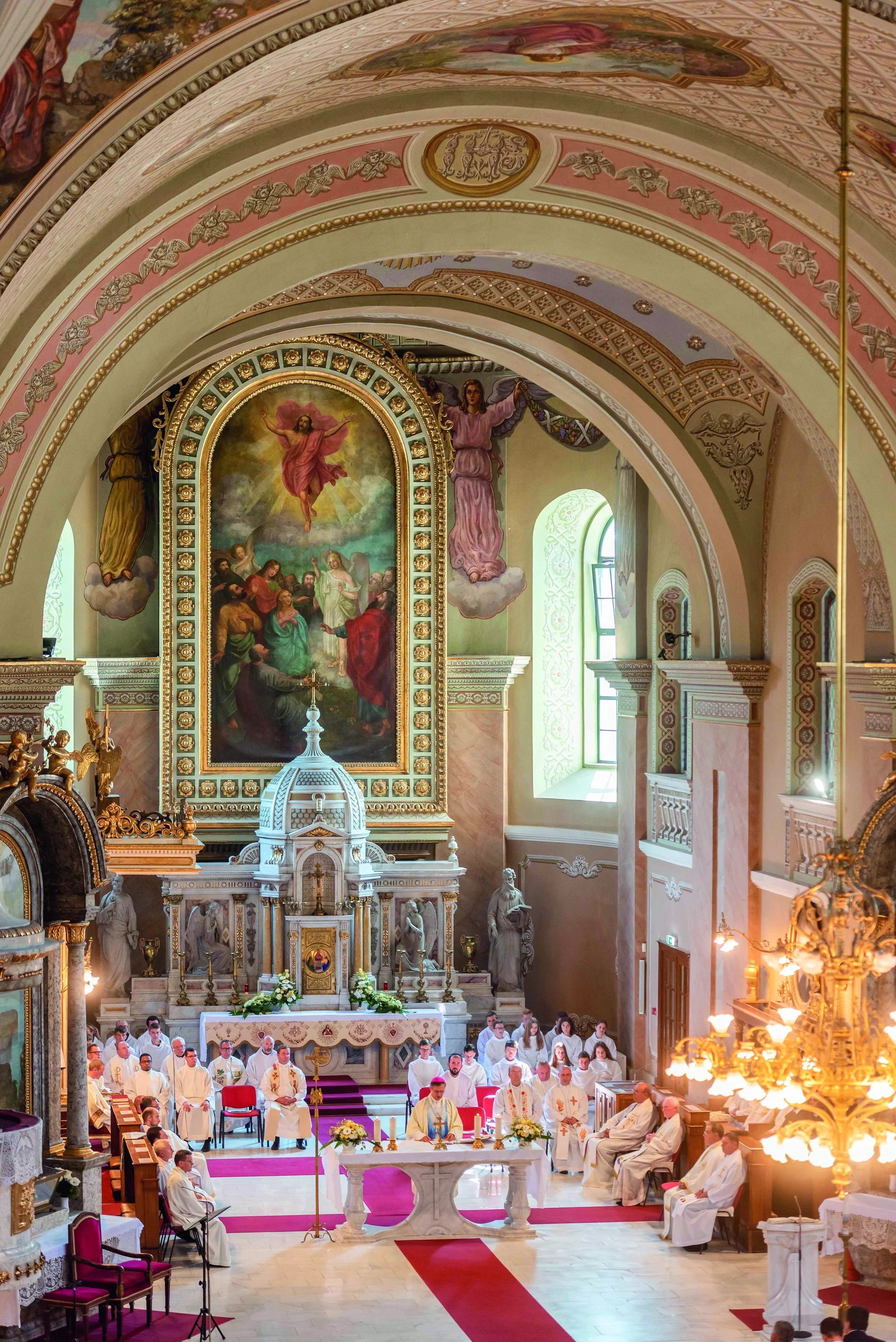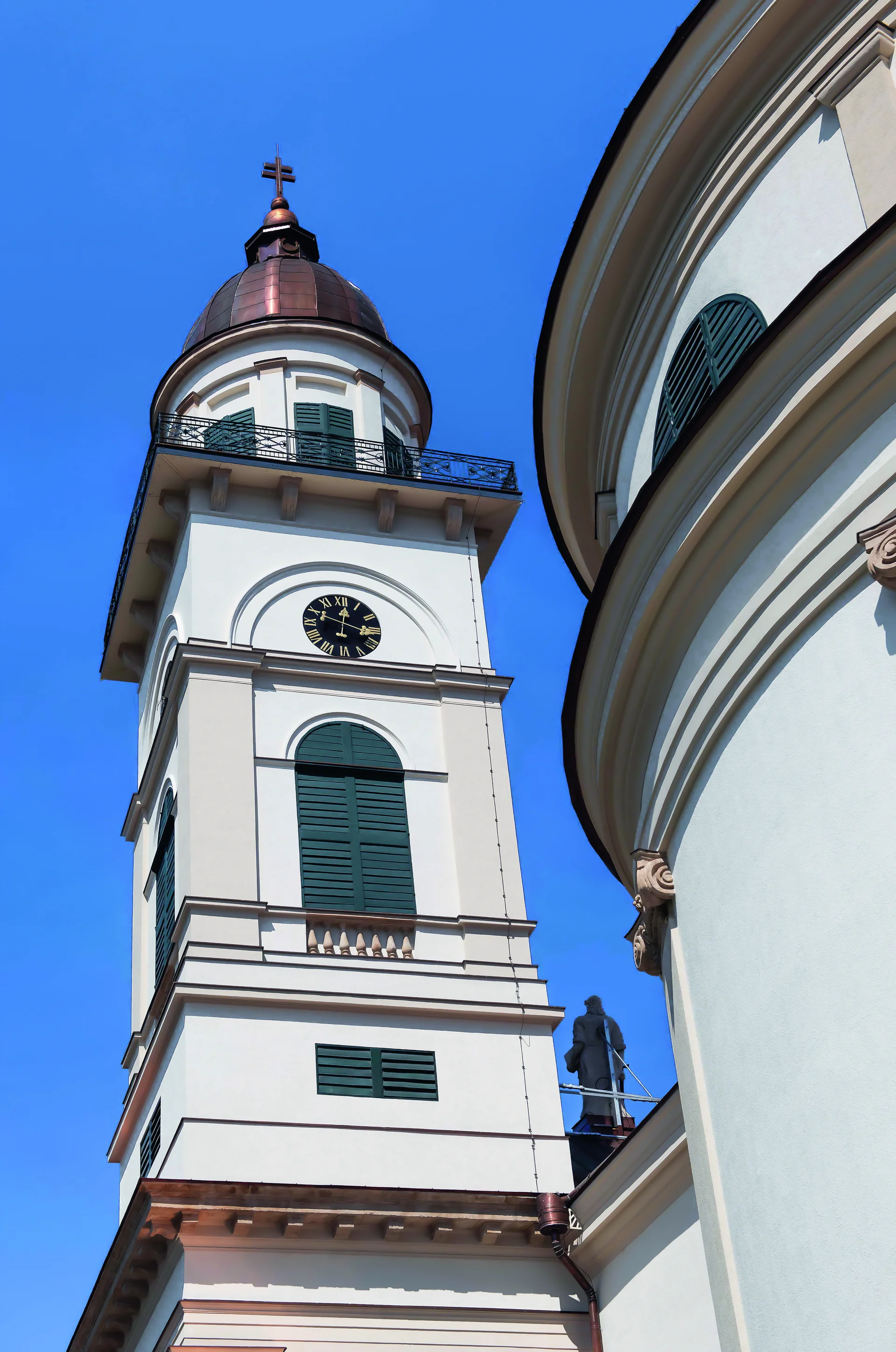 A szatmári egyházmegye 1804-es megalapítása a város jelentős fejlődését eredményezte. Az első püspök, Fischer István a pár évvel korábban elkészült városi plébániatemplom bővítése mellett döntött, de az így átalakított épület sem felelt meg a székesegyházi rangnak. Ezért Fischer utóda, Hám János megbízta Hild Józsefet egy immár méltó épület megtervezésével. Hild meghagyta az elkészült szentélyt, a korábbi hajó és torony bontása után épült fel a kupolával fedett főhajó és a kéttornyos, portikusszal tagolt főhomlokzat. Az építkezés az 1834-es nagy partiumi földrengés miatt elhúzódott, a felszentelésre csak 1837. augusztus 20-án kerülhetett sor. A székesegyház így egyszerre a 18. század barokk és a reformkor érett klasszicista alkotása, a város hatalmas, négyszög alakú főterének meghatározó épülete. A felújítás során talán a leglátványosabb változás a régi bádogtető rézre cserélése volt, ezzel az épület összképe visszanyerte eredeti eleganciáját. Az elszürkült homlokzatok törtfehér színt kaptak, ami kiemeli a restaurált kőelemeket. A székesegyház megújulása 2021. augusztus 20-án, felszentelésének évfordulóján ünnepélyes szentmisével zárult.