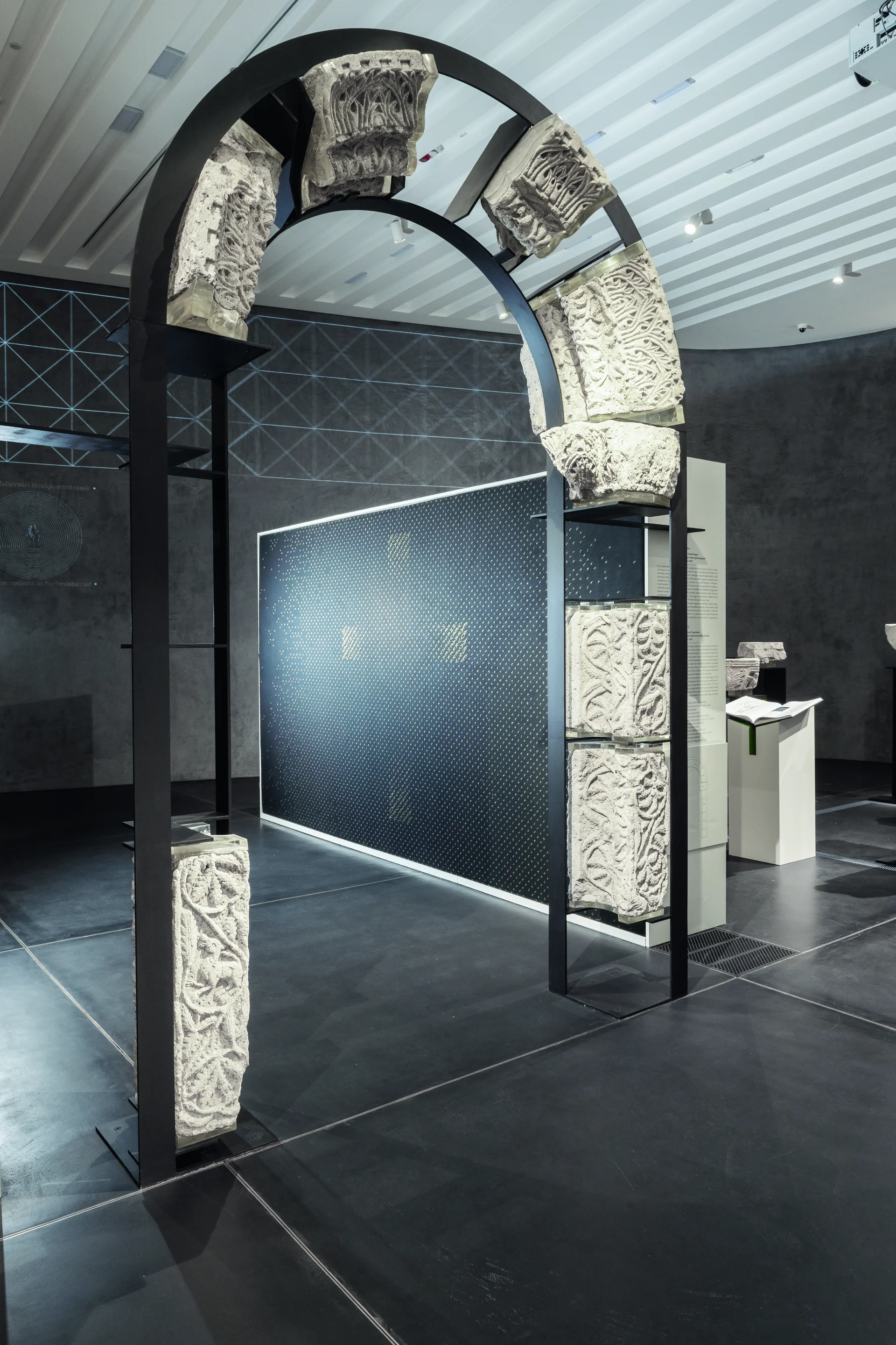 A székesfehérvári koronázótemplom történelmünk talán legértékesebb helyszíne volt – pusztulása ezért is hatalmas veszteség. Ezt a hiányt hivatott enyhíteni a bazilika látogatóközpontja, melynek központi eleme az egykori templomot bemutató kőtár. Az új kiállítótér a régészeti helyszín közelében, de attól építészetileg távol eső épületben kapott helyet: egy 1939-ben átadott Bauhaus jellegű mozi és bérház együttesében. A Solium Regni, vagyis a királyok trónja kiállítás méltó módon idézi meg a bazilikát, az eredeti építészeti kontextusra reflektáló installációk segítségével a néma kövek szinte megszólalnak. A látogatót a templom egykori bélletes kapujának váza fogadja, ebbe helyezték a fellelt töredékeket. A belső térben a köveken kívül makettek, videók, magyarázatok segítenek elképzelni az egykori koronázóhelyet. A munka során maga az értékes modernista épület is megújult, az új ház alaprajzában megőrizte az egykori filmszínház nézőterének kontúrjait. A kiállítás kurátorai, illetve a felújítás tervezői munkájukért 2025-ben ICOMOS-díjban részesültek.