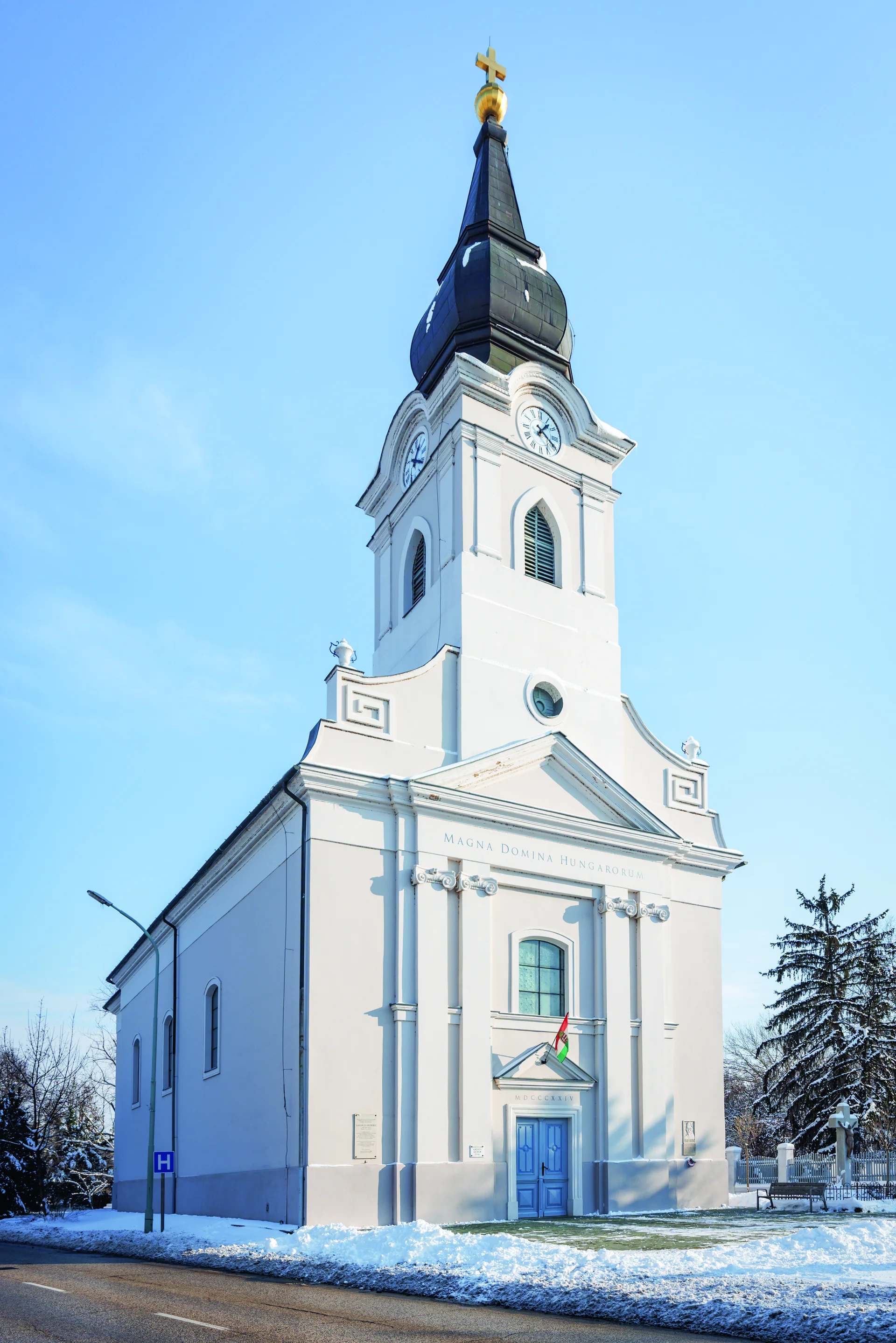 A Tisza és a Zagyva összefolyásánál álló templom a város egyik legszebb épülete. 1822–1824 között Homályossy Ferenc kamarai ácsmester tervei szerint építették a korábban itt álló vár és az egykori török mecset köveinek felhasználásával. Külső megjelenése a korai 19. század késő barokk-klasszicista stílusjegyeit mutatja, belső berendezése a két világháború között historizáló elemekkel gazdagodott. A templom az 1919-es harci események során súlyos károkat szenvedett, tornya összeomlott, ám ezt később helyreállították. 2020-ban, állami támogatással fejeződött be a templom átfogó, a homlokzatokra és a belső térre is kiterjedő felújítása.