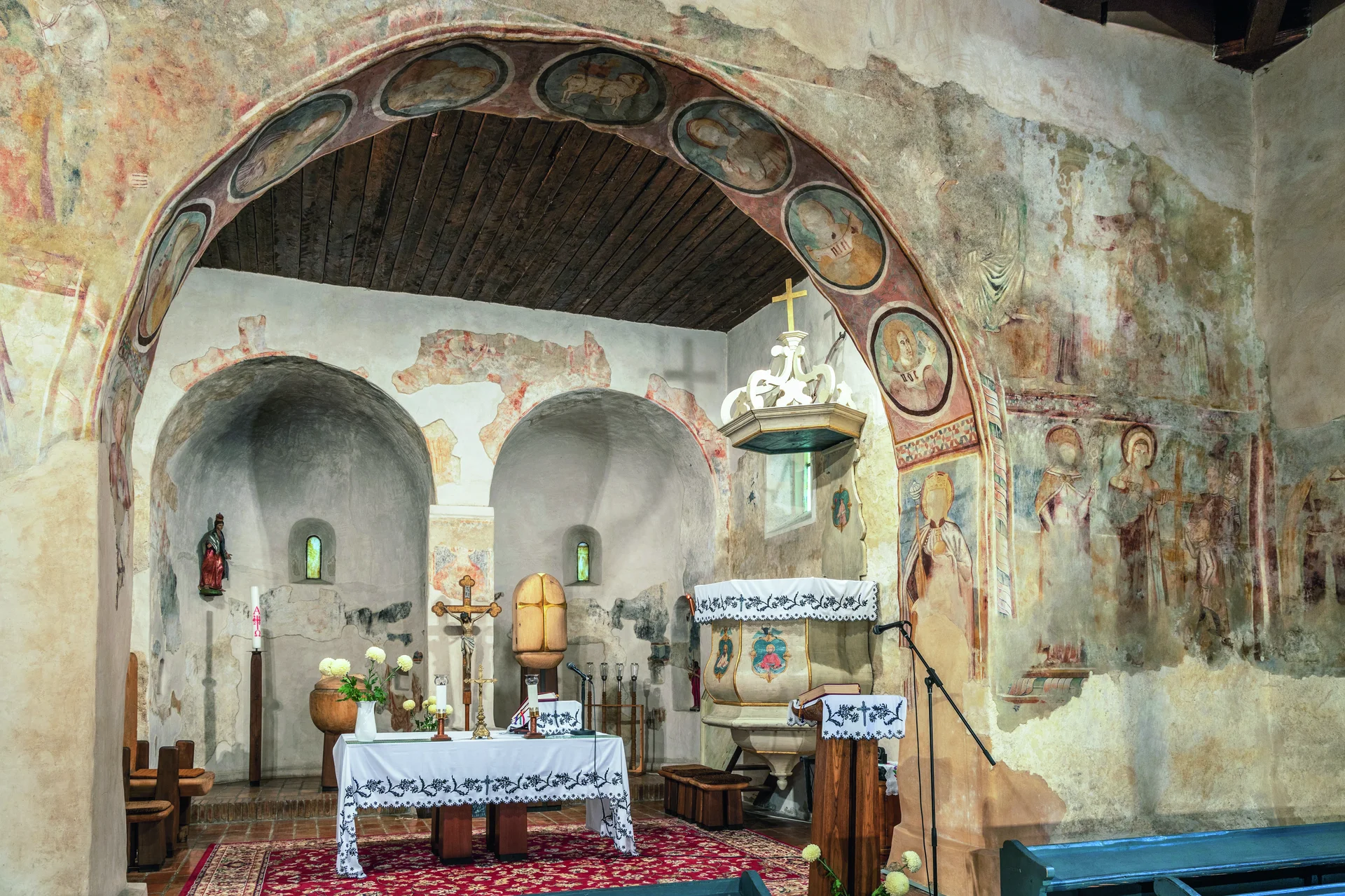 A templomot ugyanakkor nem kerülték el nem úszta meg a török háború pusztításai, ennek nyomai fedezhetők fel a freskók arcainak megrongálásában, hiszen az iszlámban az arcok ábrázolása nem megengedett. A 18. században a templomba barokk főoltár került a szádvári várból. Az 1973–75 között zajló átfogó felújítás idején restaurálták a középkori freskókat és kialakították a kazettás mennyezetet idéző modern térlefedést. 2023-ra a templom újra nagyon rossz állapotba került, az értékes freskókat már a beázás fenyegette. A Magyar Falu Program támogatásával a tetőszerkezete és zsindelyfedése újult meg. Az épület így újra eredeti pompájában ragyoghat a falu feletti dombon.