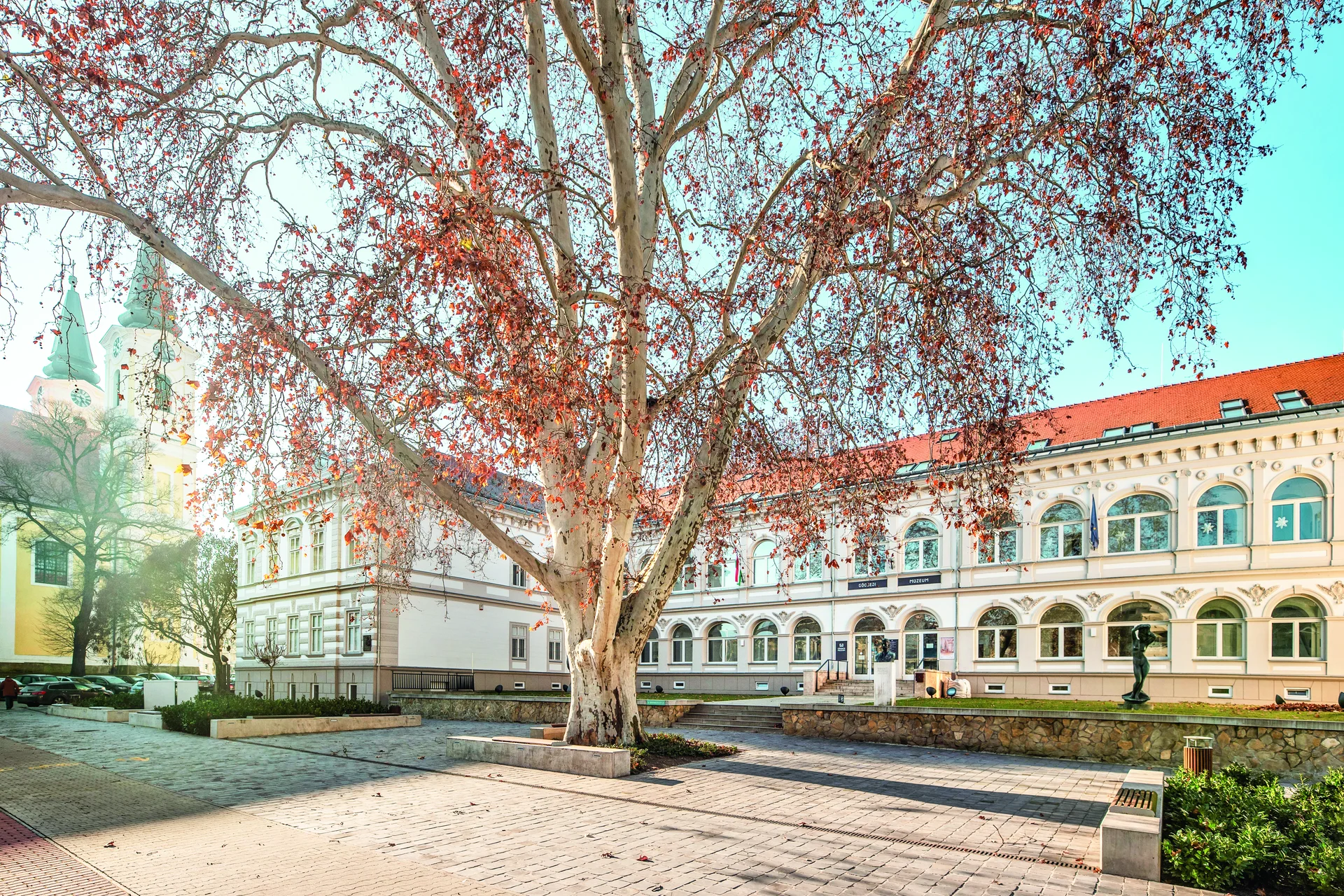 A zalaegerszegi Göcseji Múzeum historizáló, bérházból kialakított épülete a város egyik legkarakteresebb közgyűjteményi helyszíne, amelynek megújítása az elmúlt években új minőséget adott az intézménynek. A 19. század végi ház felújítása során megőrizték a homlokzat és a tömegformálás történeti jellegét, miközben a belső terek korszerű múzeumi igényekhez igazodtak: világosabb, áttekinthetőbb kiállítóterek, új közönségforgalmi zónák és modern kiszolgálóhelyiségek jöttek létre. A múzeum közvetlen szomszédságában áll a Mindszentyneum, amely kortárs építészeti eszközökkel kapcsolódik a történeti környezethez. Az új épület határozott, mégis visszafogott formálása tudatos ellenpontja a múzeum historizáló megjelenésének, homlokzatának ritmusa és anyaghasználata szimbolikus tartalmakat hordoz. A Mindszenty József életét és örökségét bemutató kiállításai mellett közösségi, illetve rendezvényfunkciókat is ellát. A fejlesztés 2019 és 2022 között, a Modern Városok Program keretében, állami forrásból valósult meg.